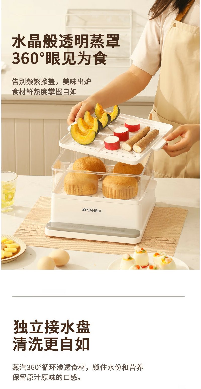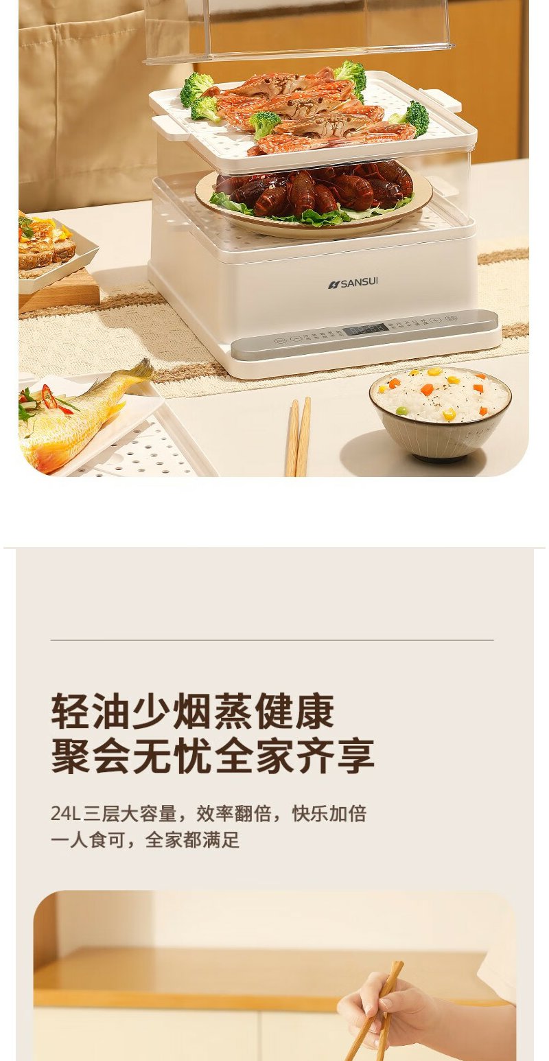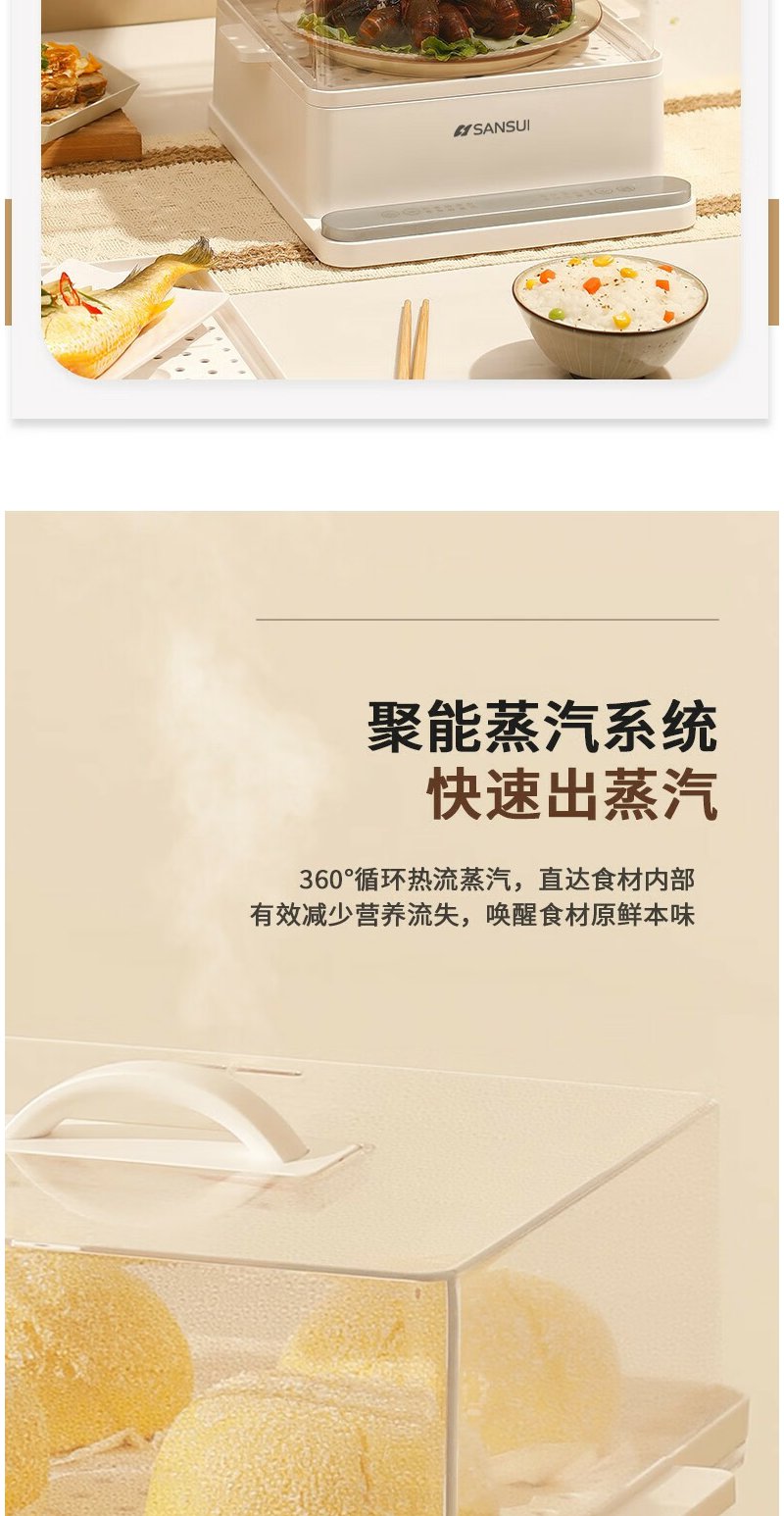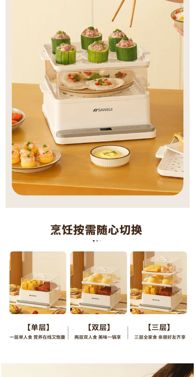 山水(SANSUI) 多功能三层电蒸锅 SZG60K 白色