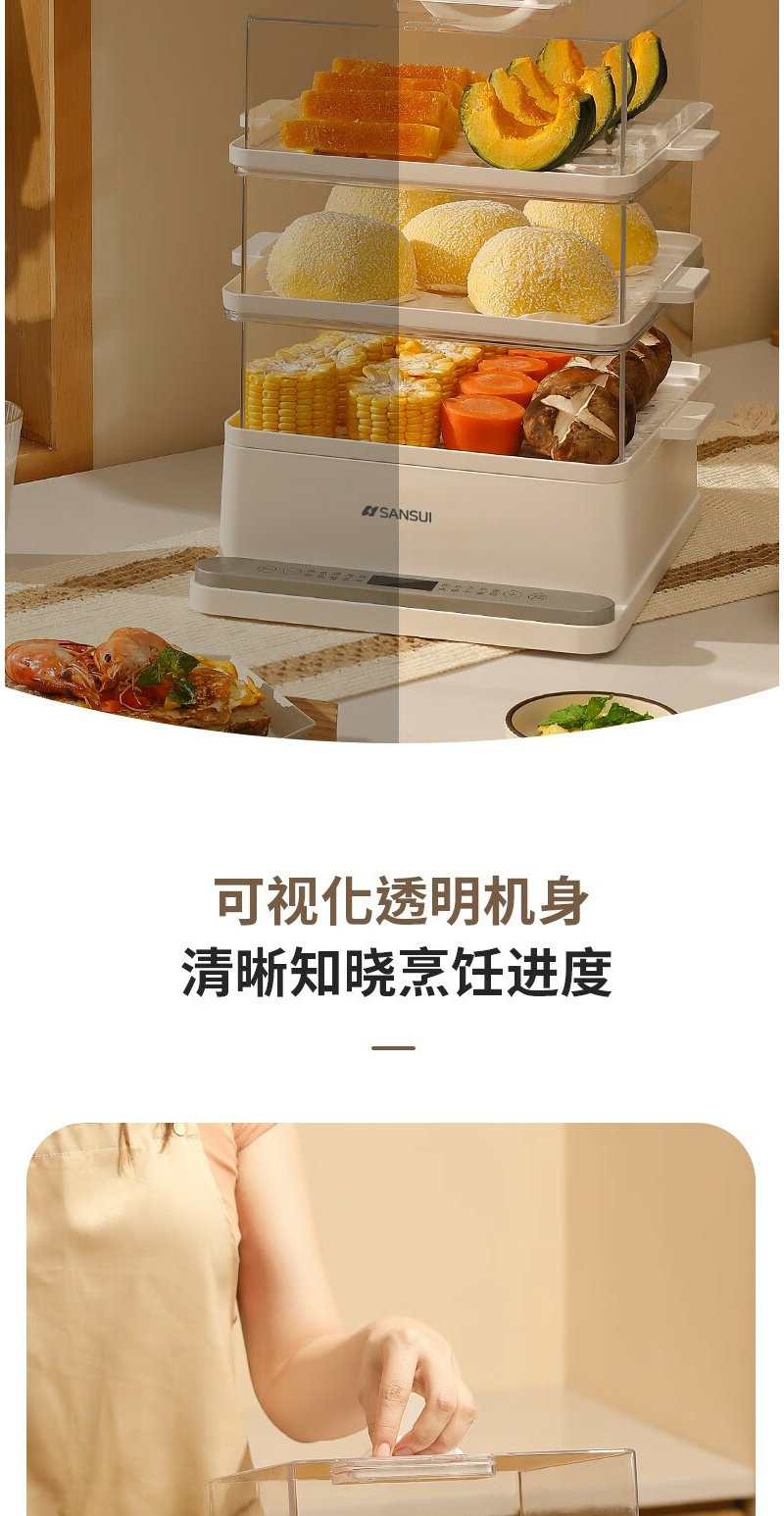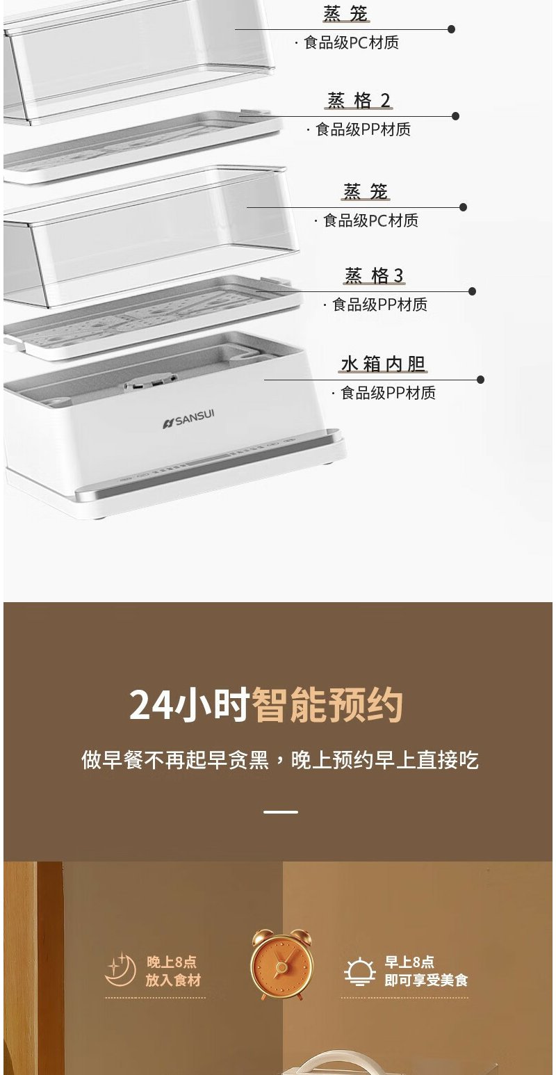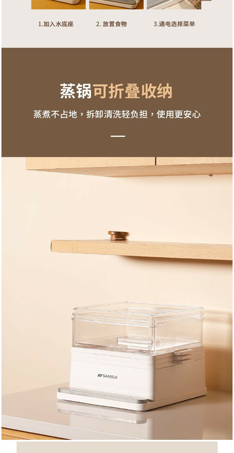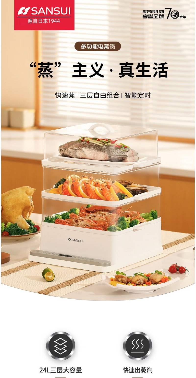 山水(SANSUI) 多功能三层电蒸锅 SZG60K 白色