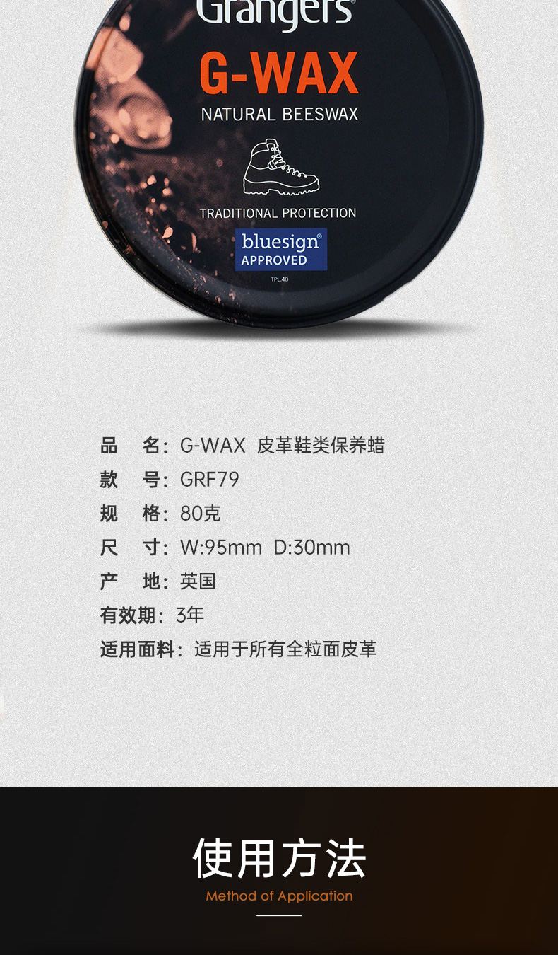 英国GRANGERS 皮革鞋类保养蜡DWR防泼水修复皮革护理膏G-WAX GRF79
