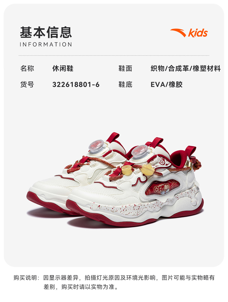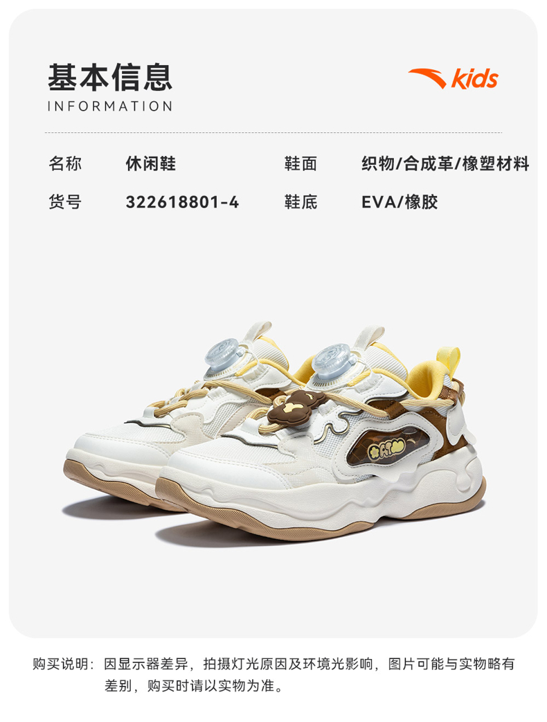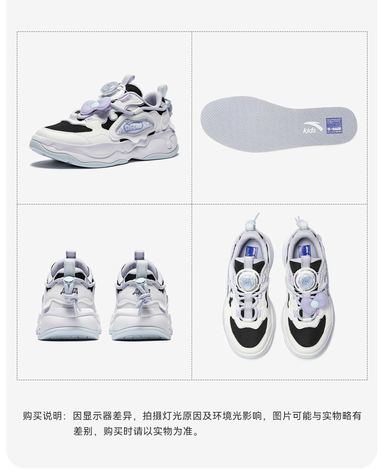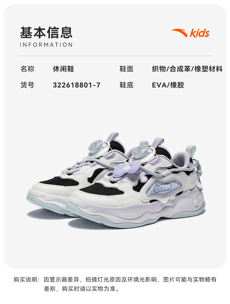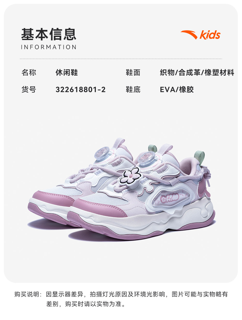 棉花糖丨安踏儿童板鞋女童鞋2026春季新款软弹耐磨小白鞋滑板鞋322618801