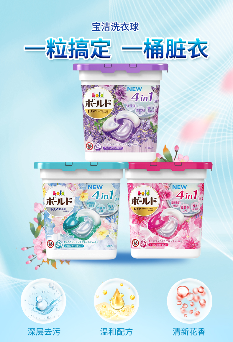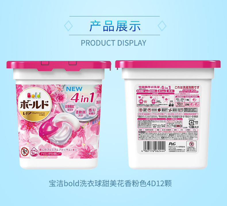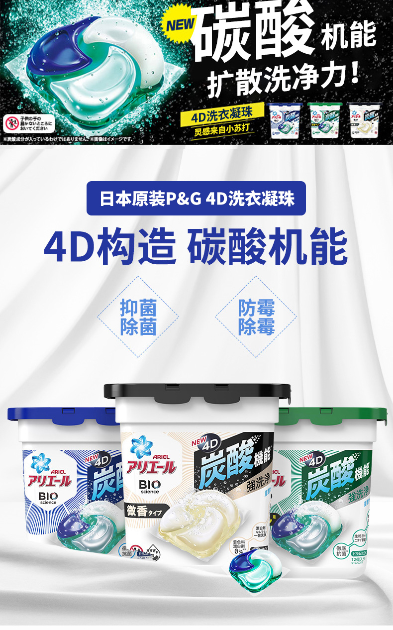 日本进口宝洁(P&G)洗衣凝珠4合1洗衣球柔顺护色抑菌机洗洗衣剂
