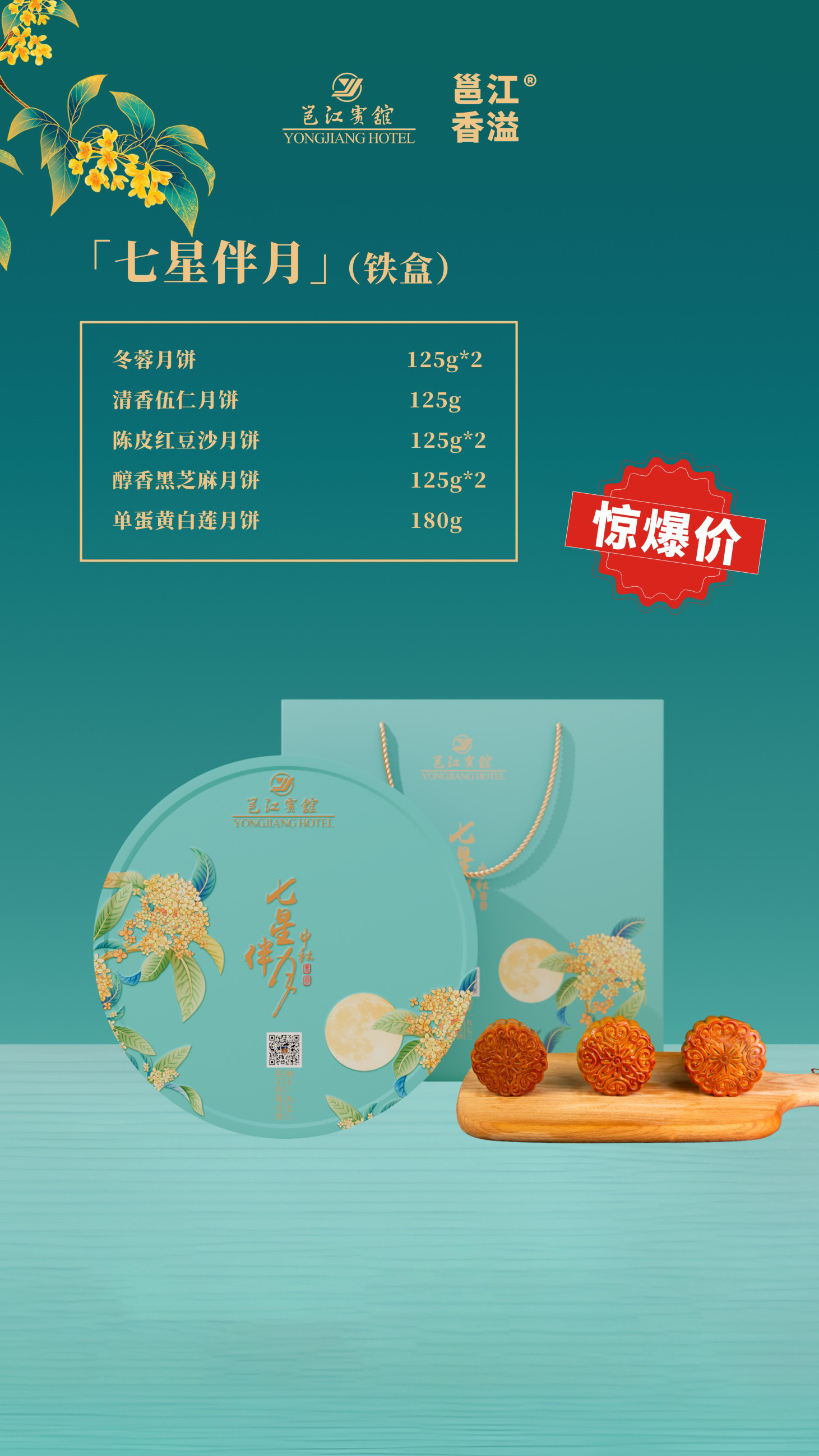 1055g:单蛋黄白莲月180g*1 、醇香黑芝麻月125g*2、 清香五仁月125g*1 、陈皮红豆沙月125g*2 、冬蓉月125g*2