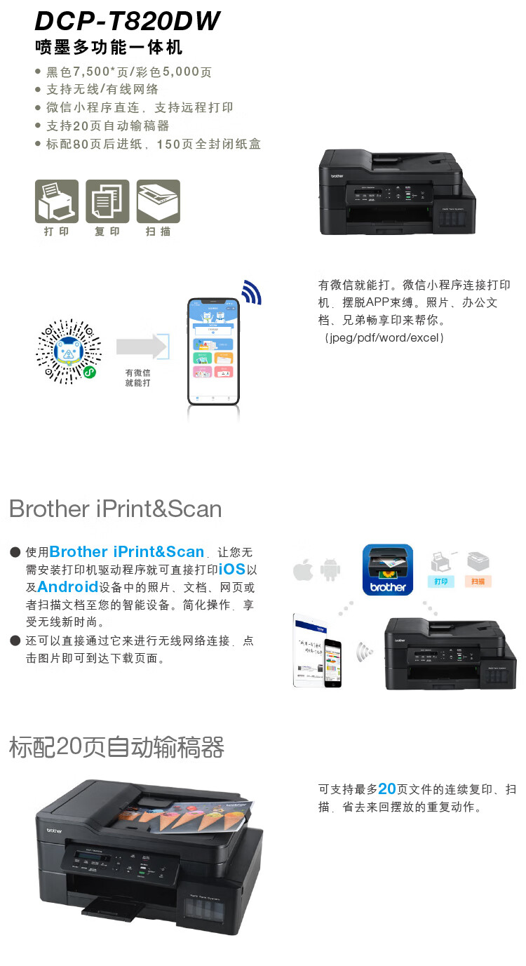 兄弟(Brother)彩色喷墨多功能一体机 DCP-T820DW