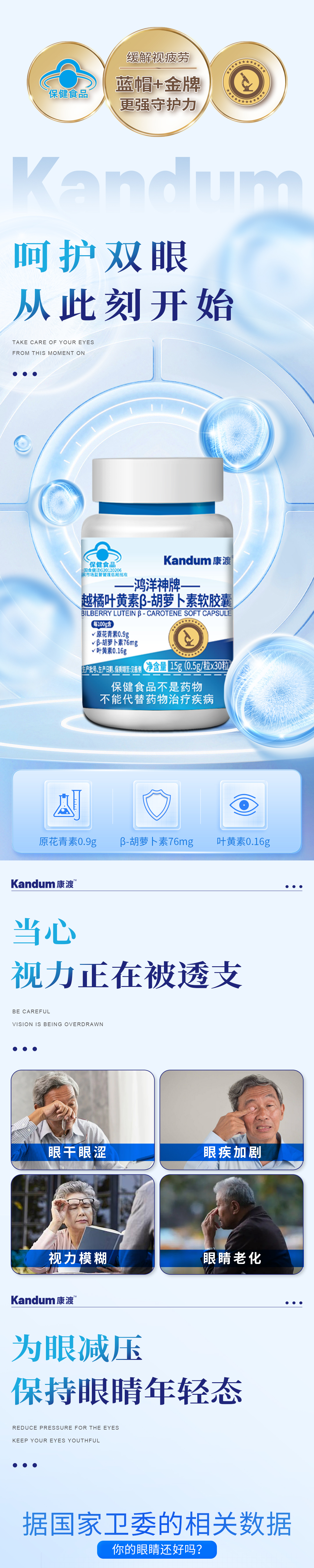 一价到底 【康渡越橘叶黄素胡萝卜素锌软胶囊】眼干眼涩、视力模糊、眼睛老化,统统都不怕!保护眼睛年轻态,从康渡开始。