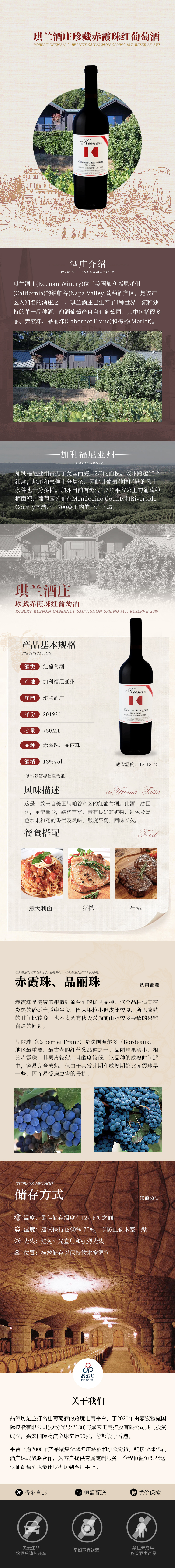 2019 Robert Keenan Cabernet Sauvignon Spring Mt. Reserve 琪兰酒庄珍藏赤霞珠红葡萄酒