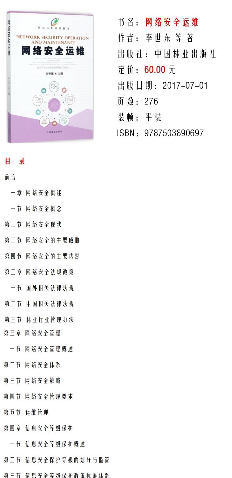 智慧林业培训丛书 网络安全运维 李世东 9069 中国林业出版社 畅销书籍