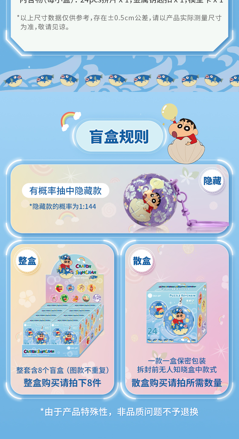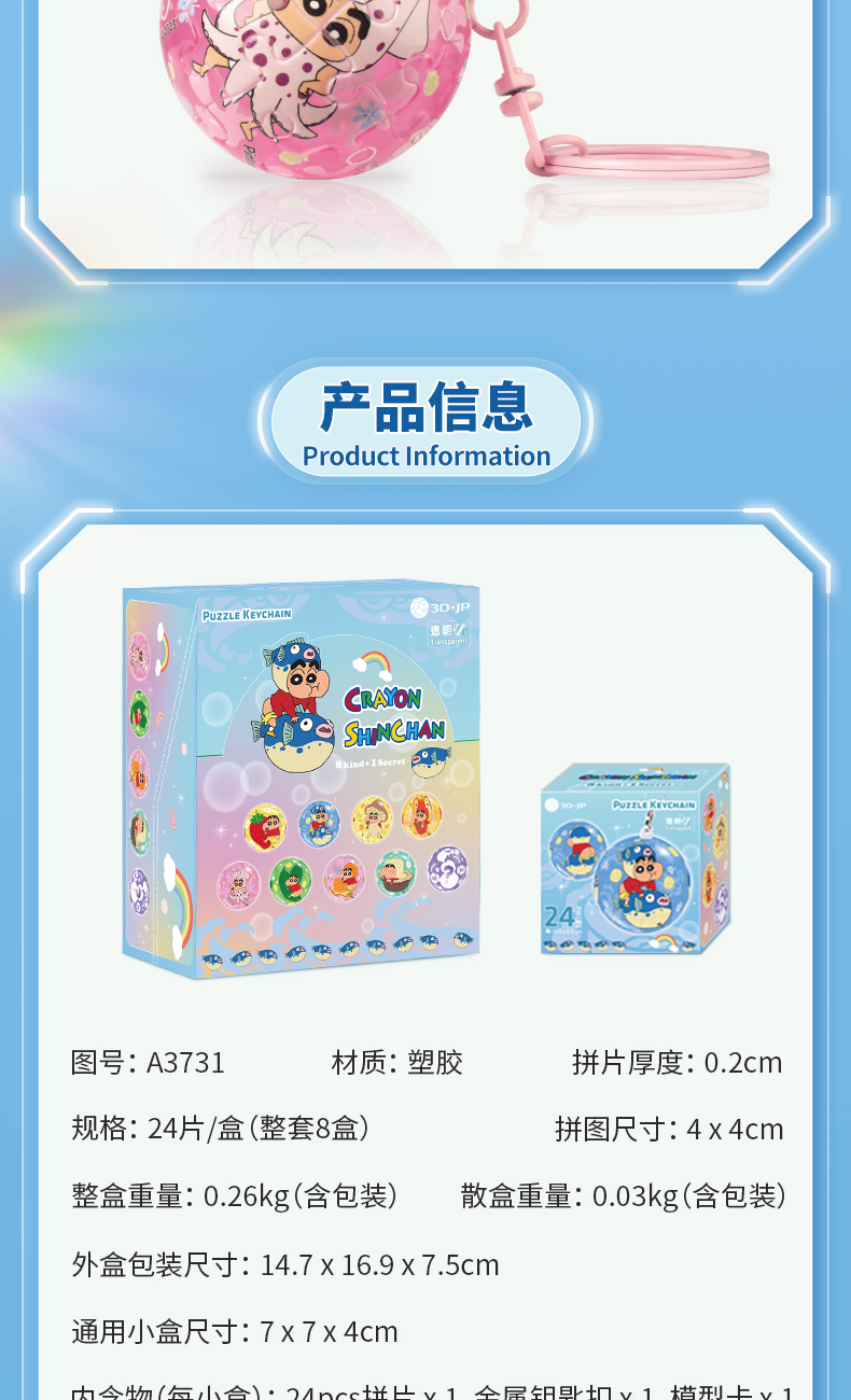 24片盲盒钥匙扣拼图 塑料拼图A3731 蜡笔小新-好好美味系列