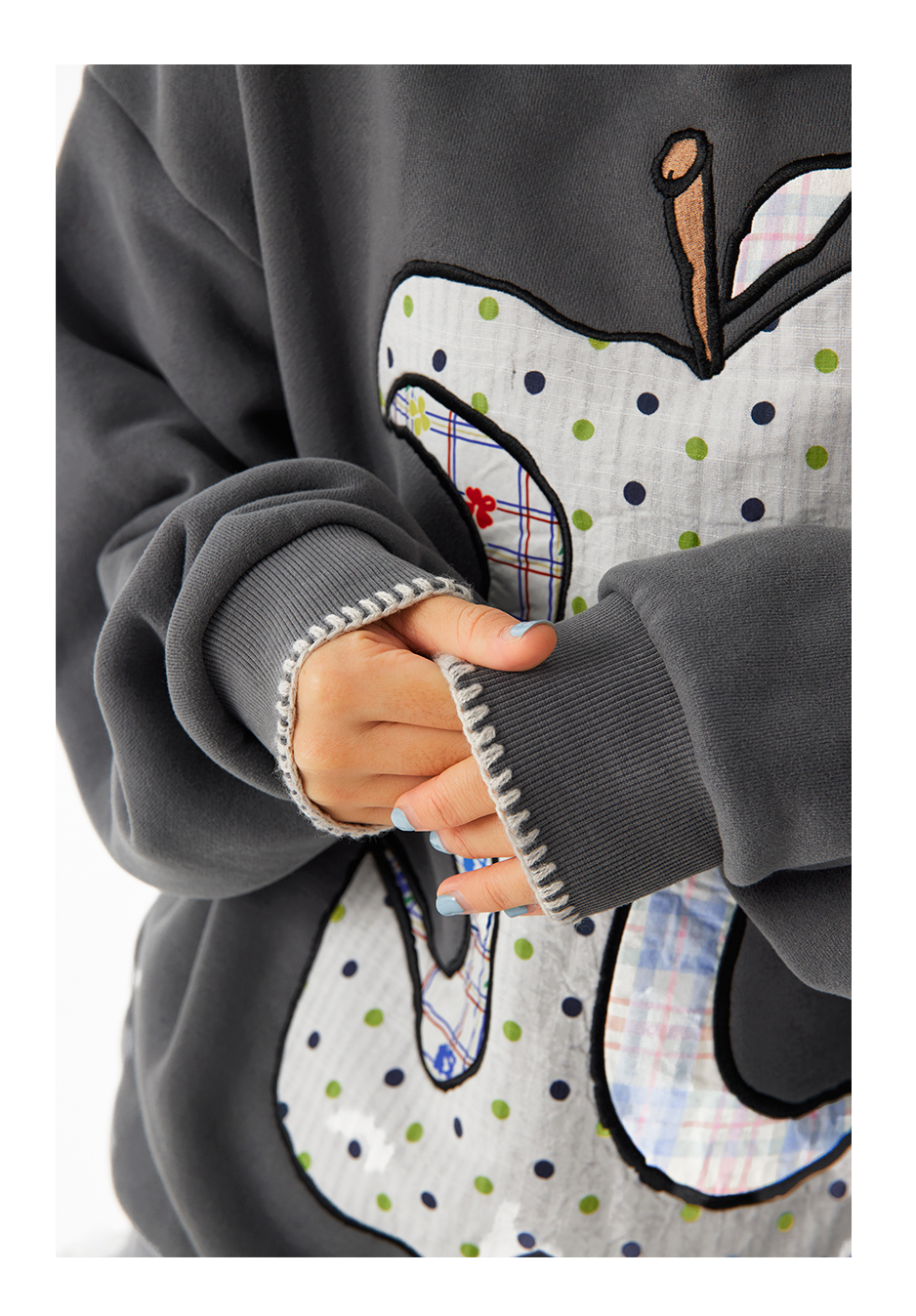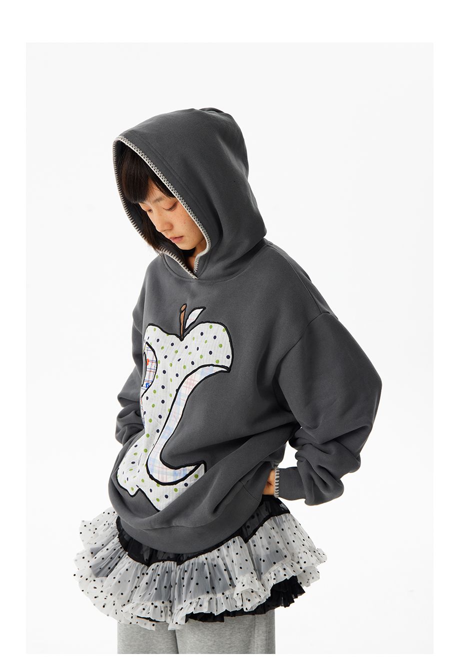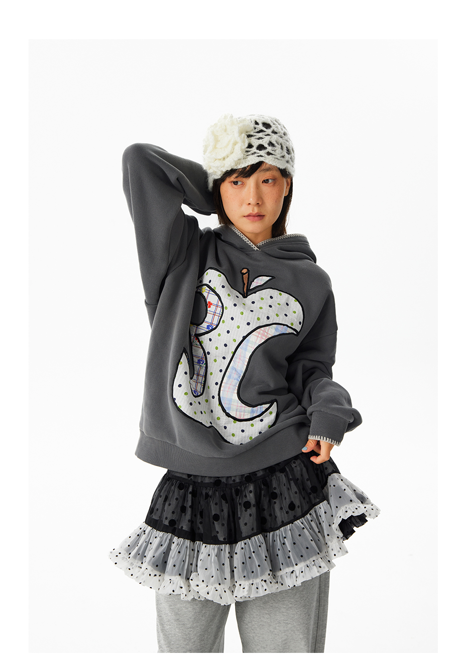 CryingCenter 3c苹果波点格纹贴布绣宽松加绒卫衣 哭喊中心