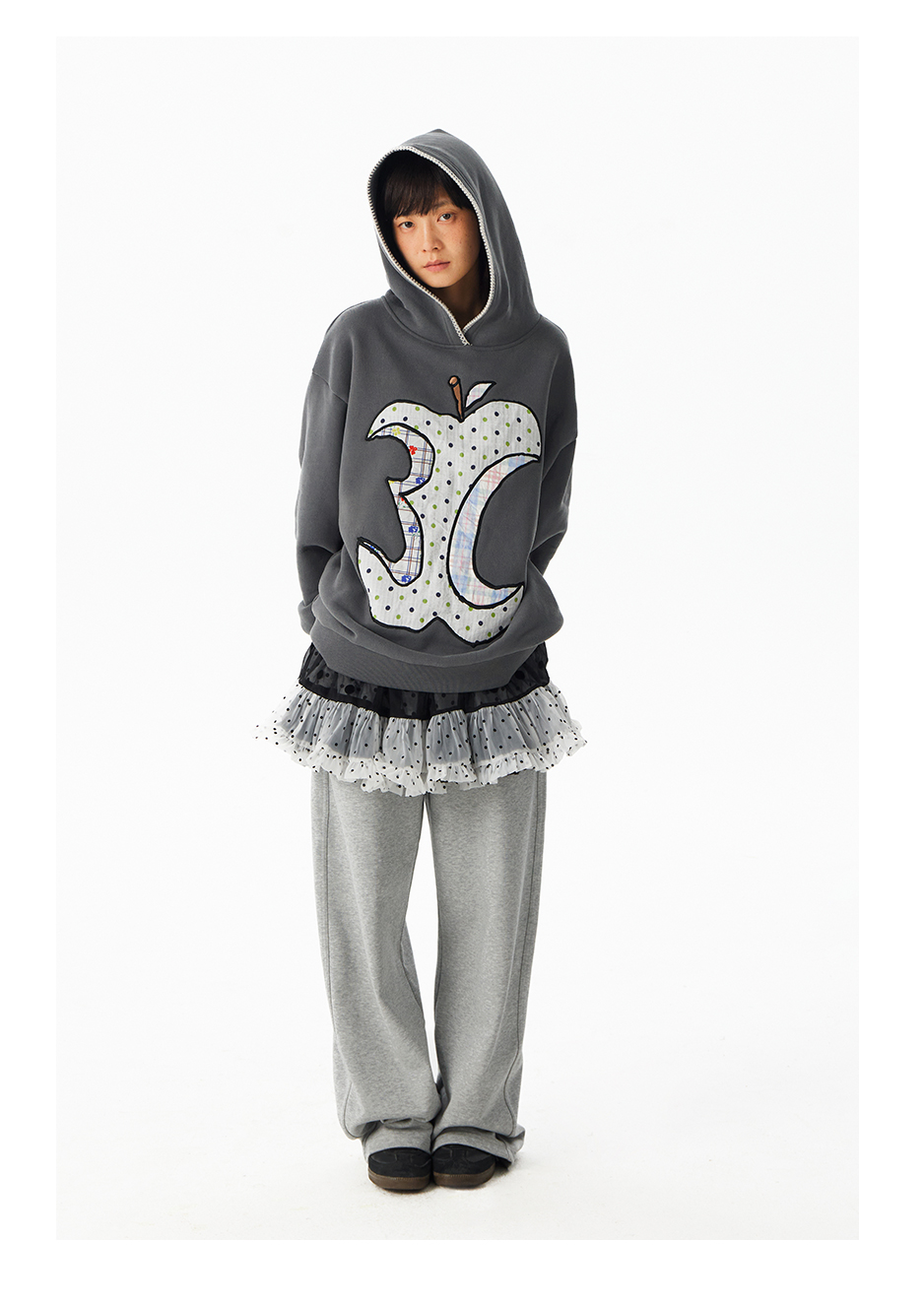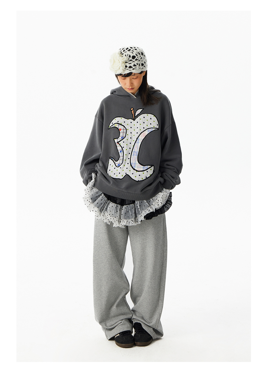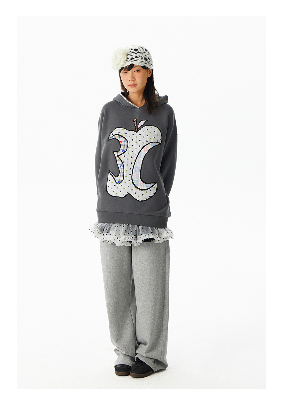CryingCenter 3c苹果波点格纹贴布绣宽松加绒卫衣 哭喊中心