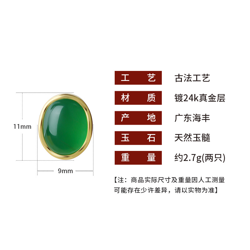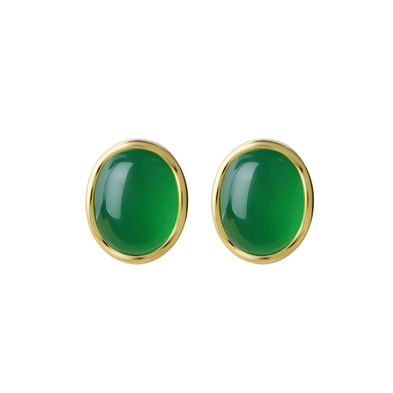 【珠翠·绿玉髓耳钉】敦煌小众新中式925银针镀金镶嵌天然绿玉髓 简约时尚女椭圆形耳钉小众百搭