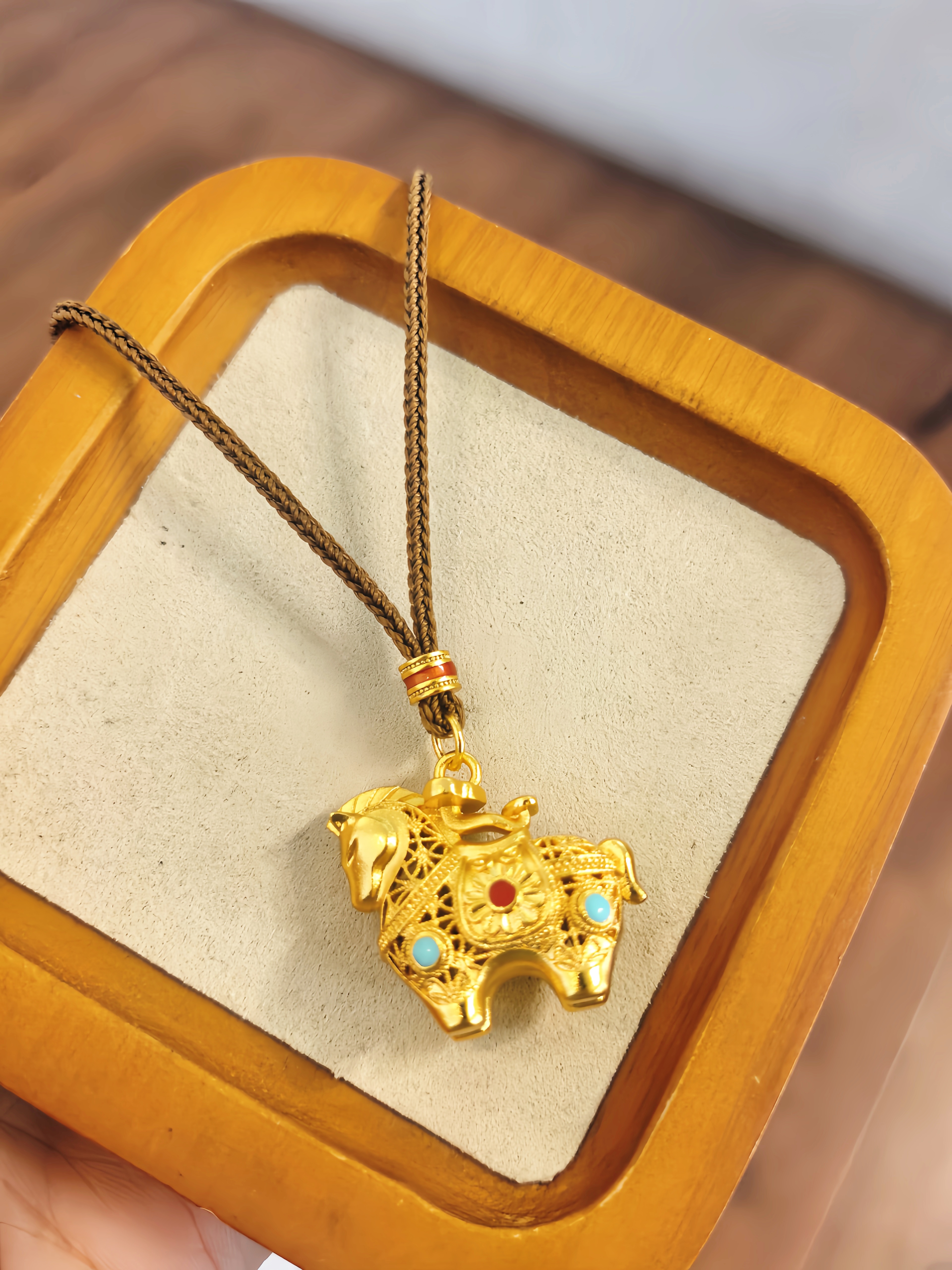 马身点缀红、蓝彩釉,还原古饰的 “错彩镂金” 美感,既保留了国风厚重感,又通过迷你尺寸让传统元素更显日常;