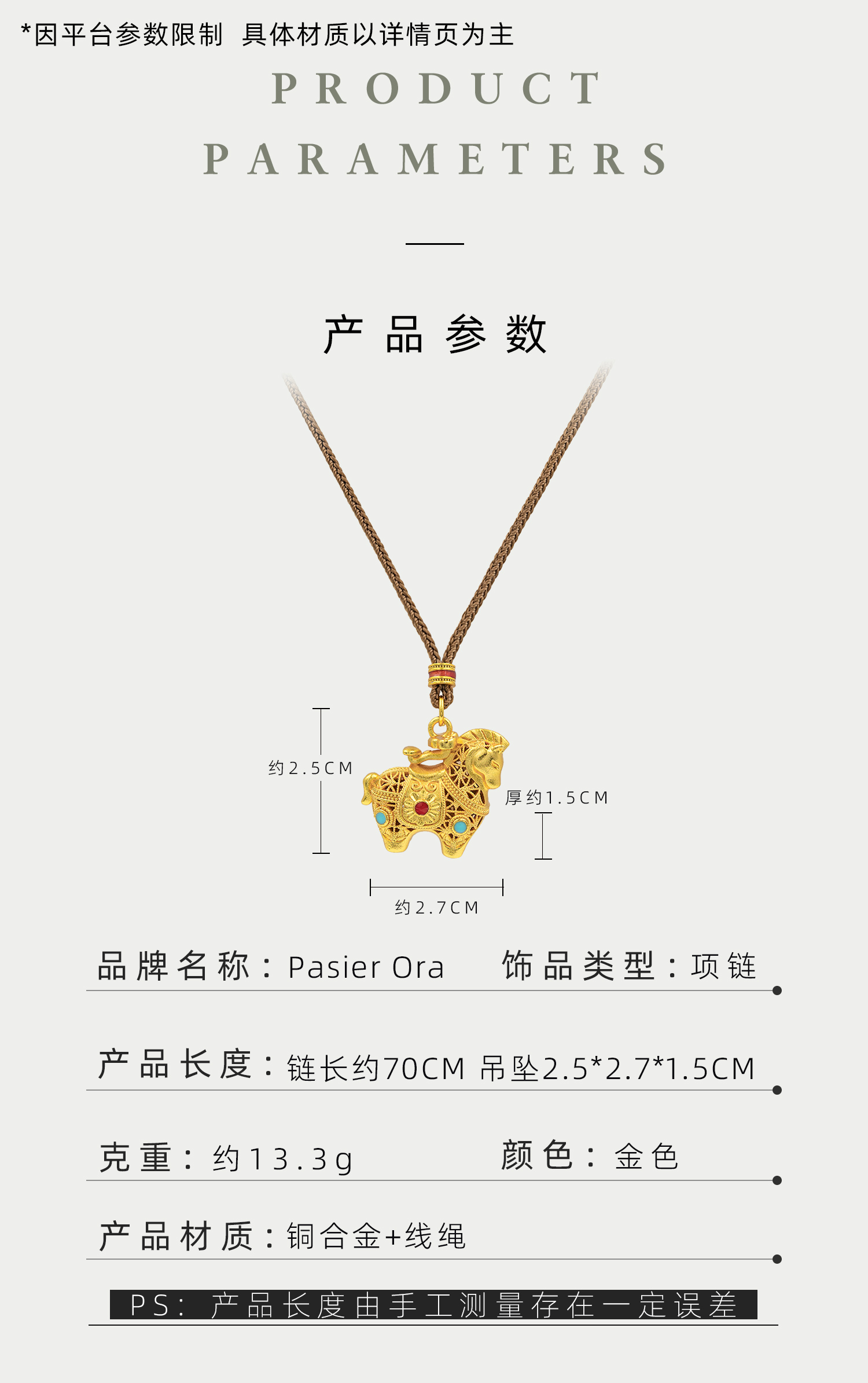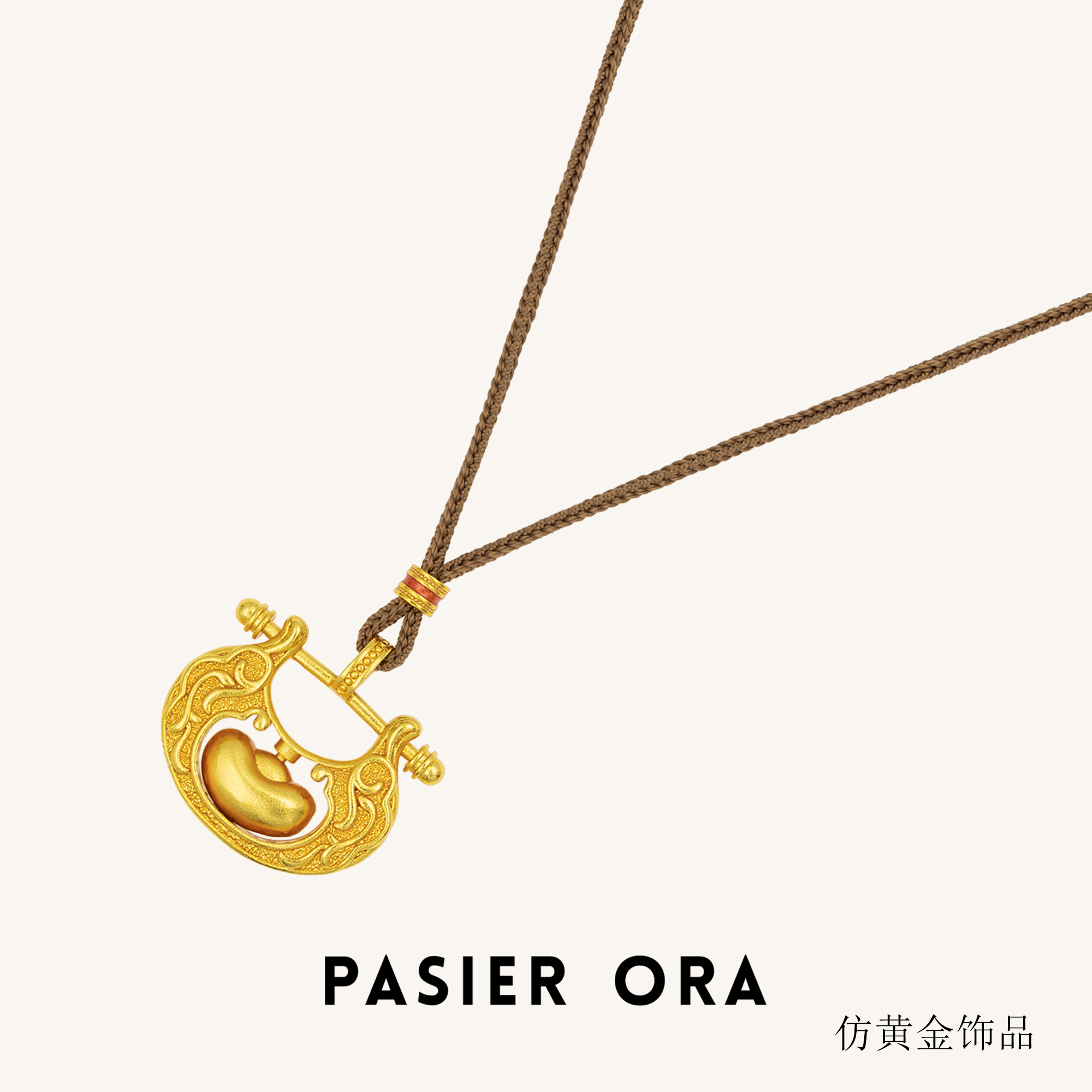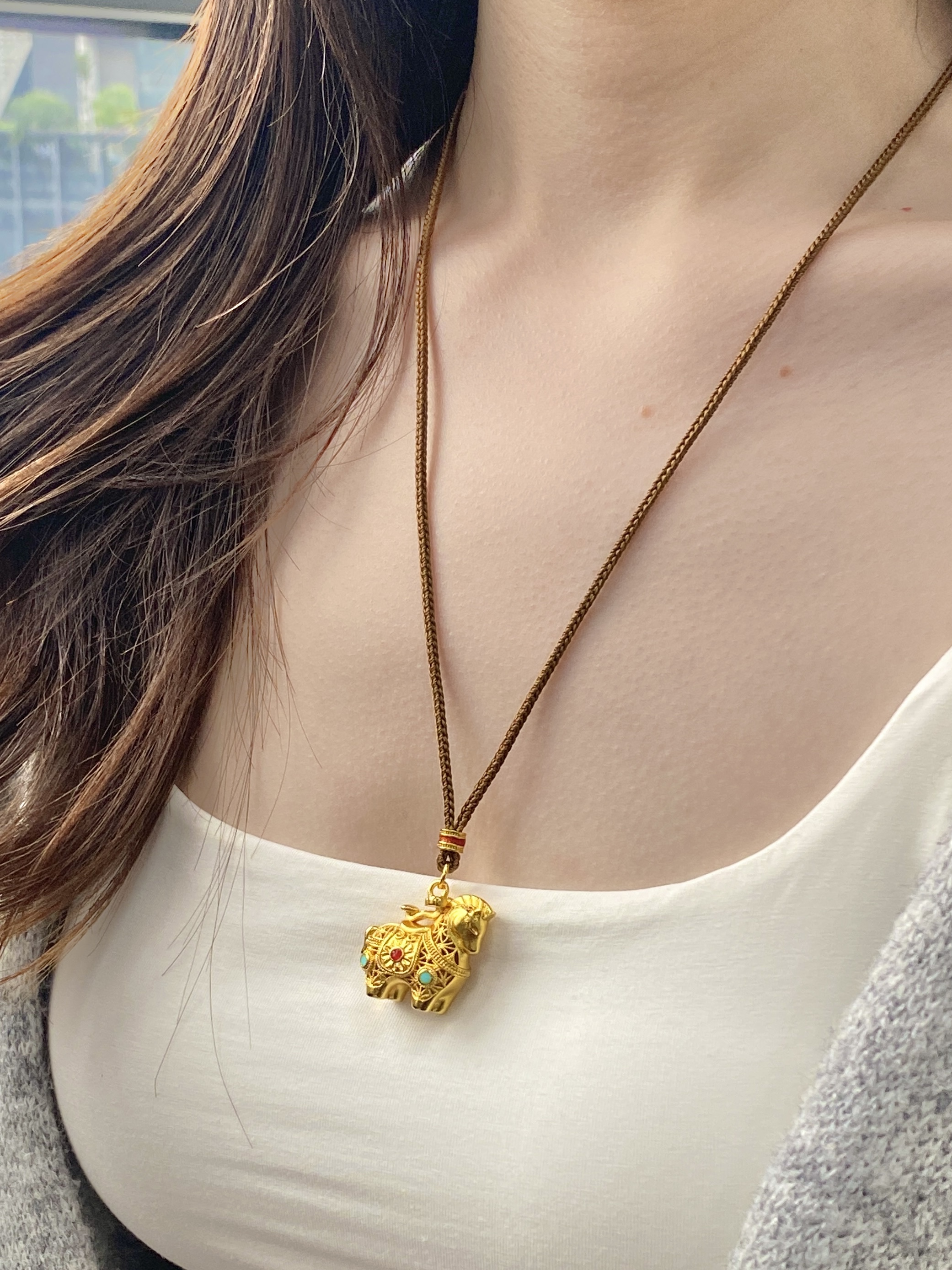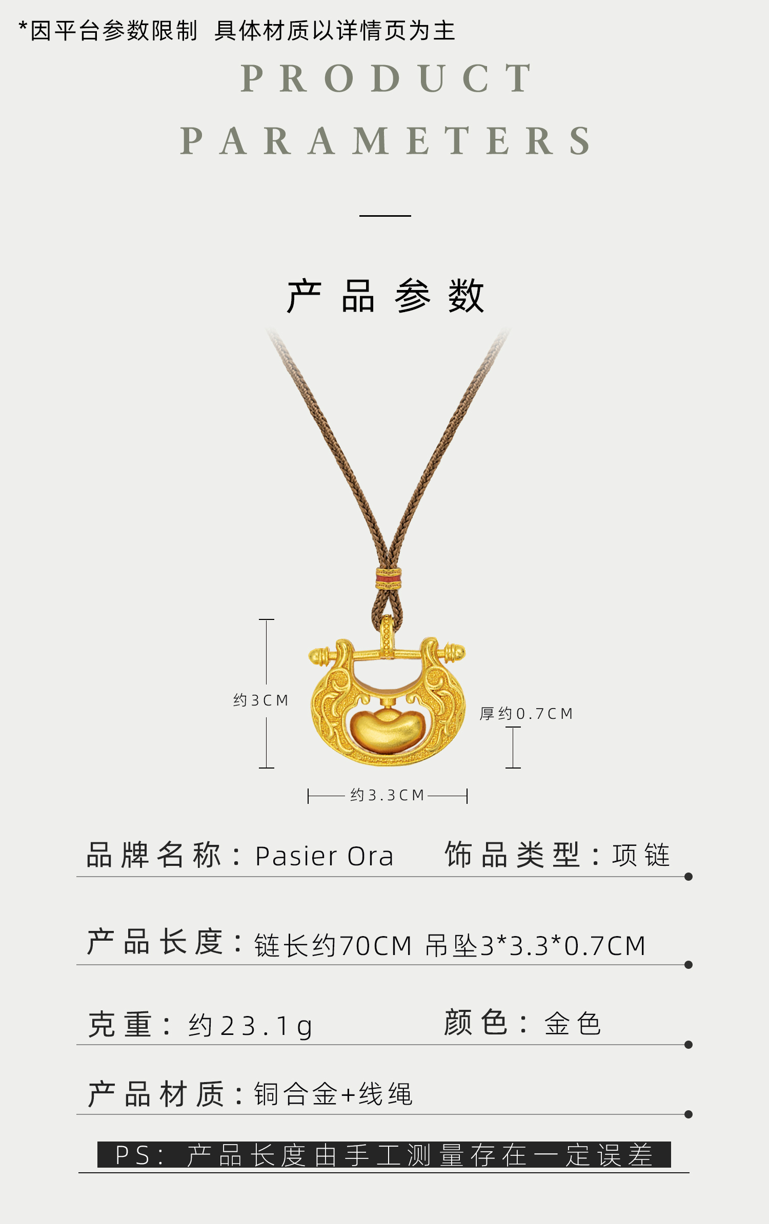 油蜡绳 + 镀金吊坠的组合,中和了金属的厚重,让国风配饰跳出 “老气” 标签,年轻感与复古感并存