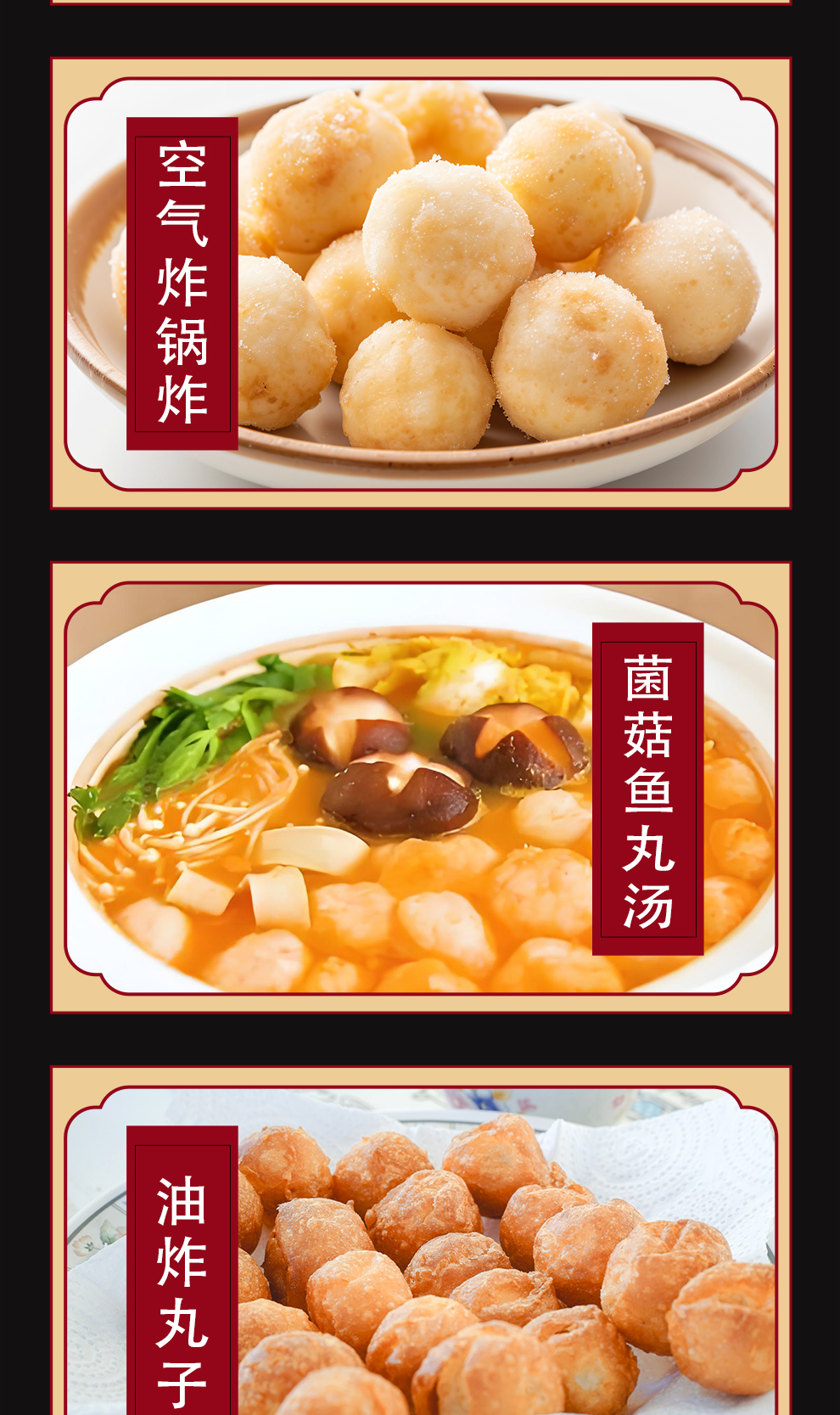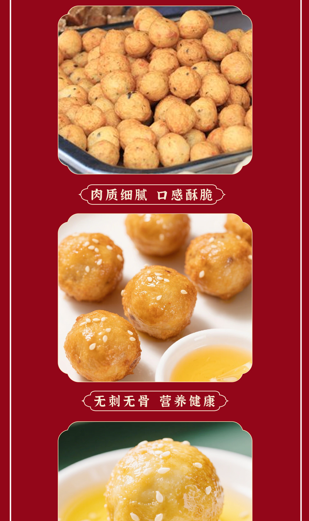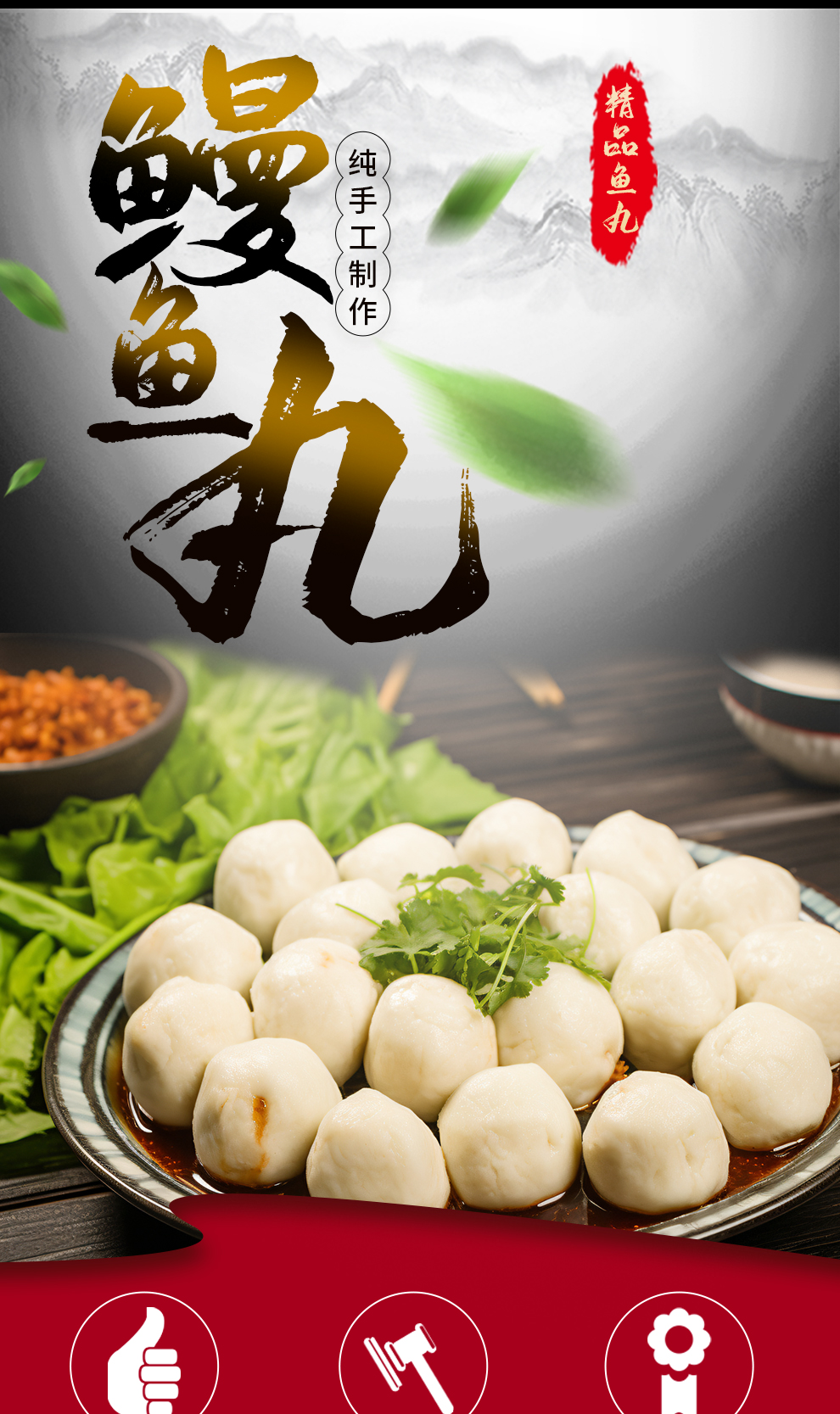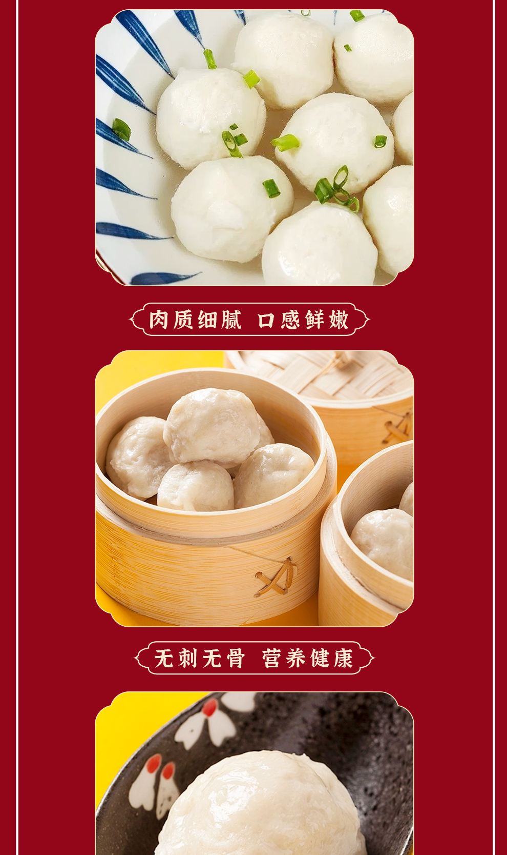 草鱼丸(不加鸡肉)180g/包、草鱼鸡肉丸180g/包、鳗鱼丸200g/包、黄鱼丸200g/包、马蹄猪肉丸180g/包