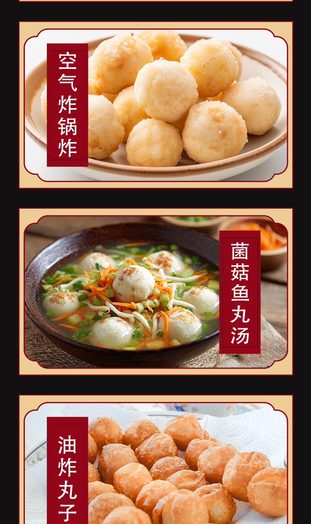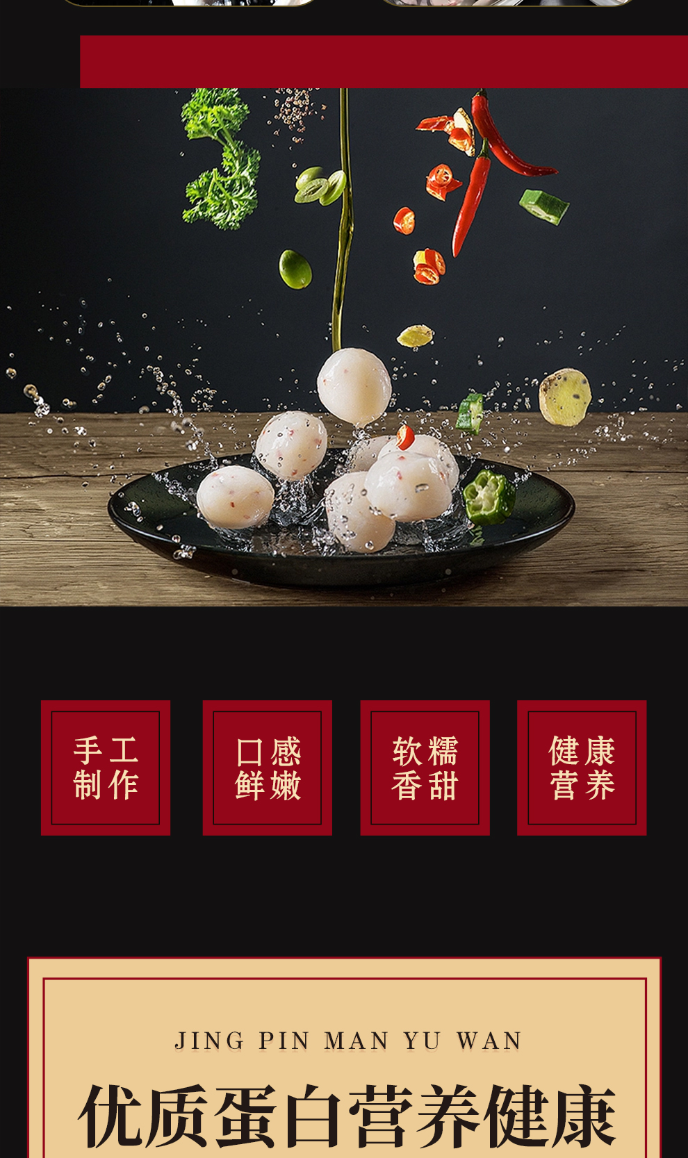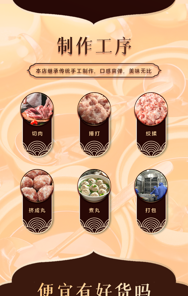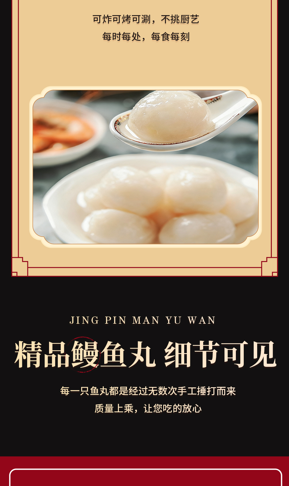 草鱼丸(不加鸡肉)180g/包、草鱼鸡肉丸180g/包、鳗鱼丸200g/包、黄鱼丸200g/包、马蹄猪肉丸180g/包