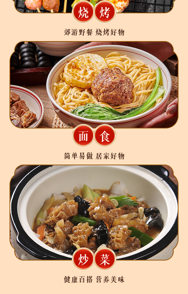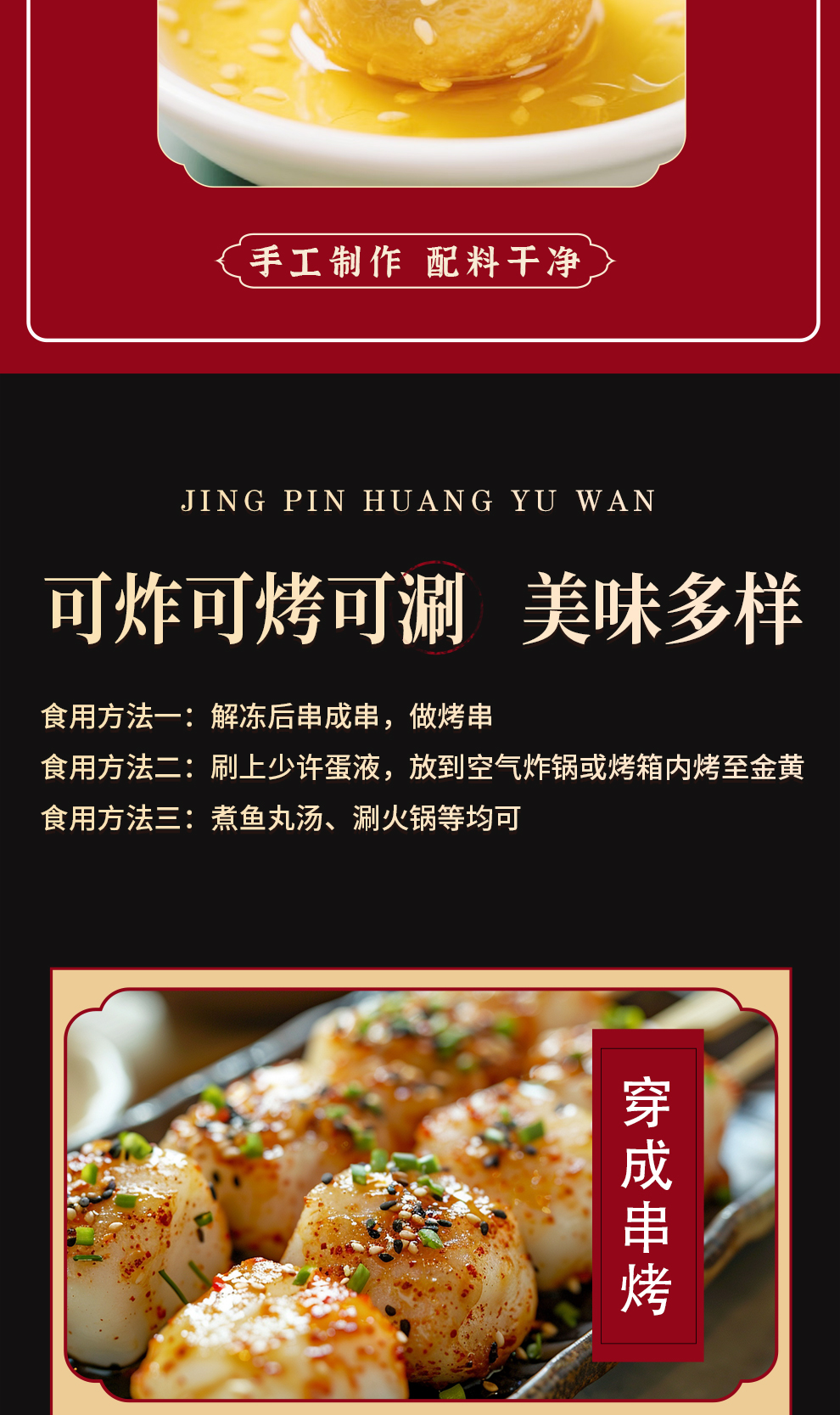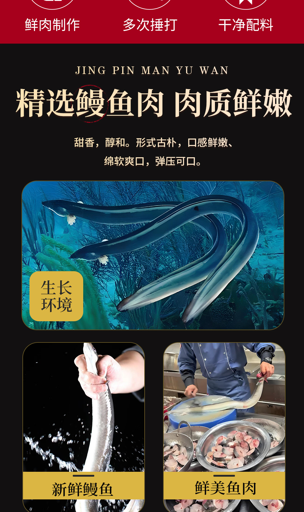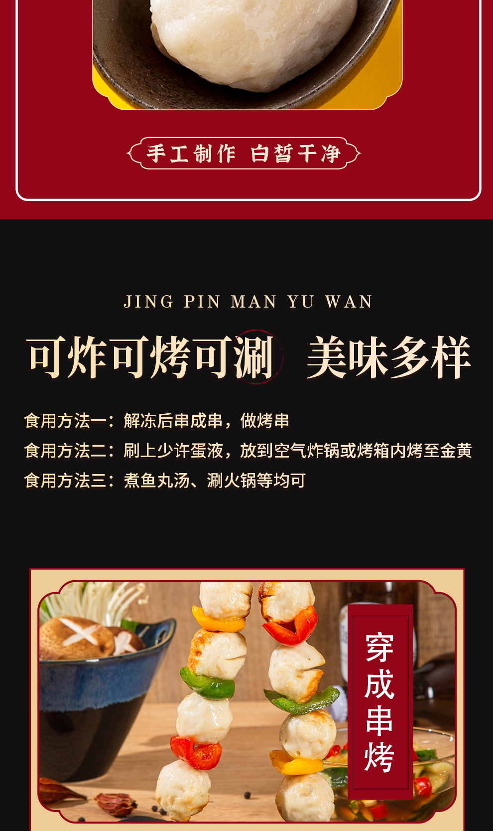 草鱼丸(不加鸡肉)180g/包、草鱼鸡肉丸180g/包、鳗鱼丸200g/包、黄鱼丸200g/包、马蹄猪肉丸180g/包
