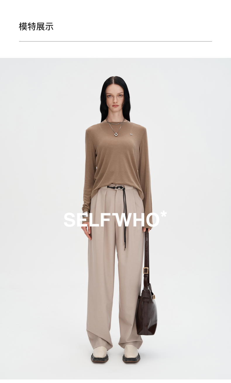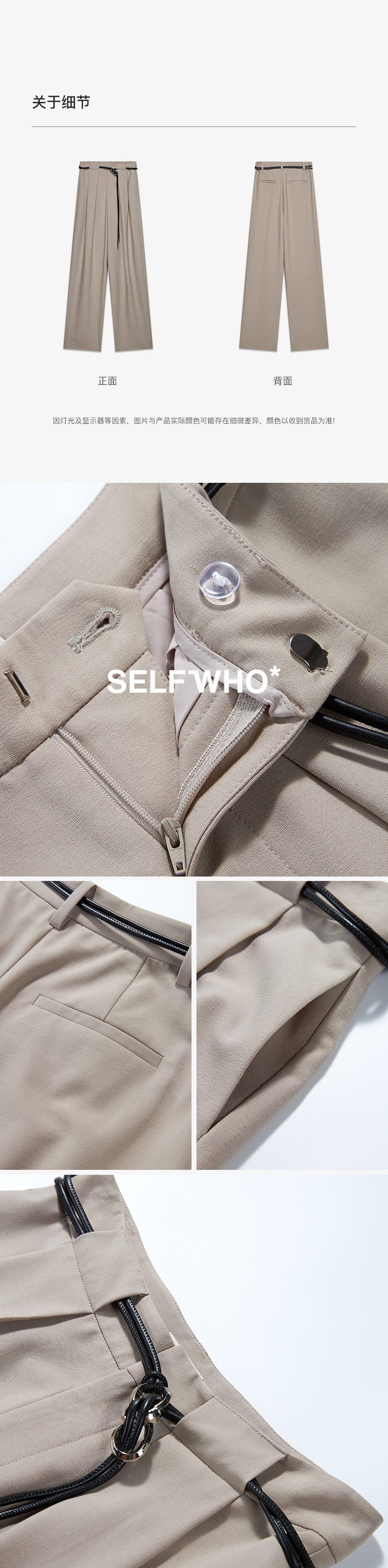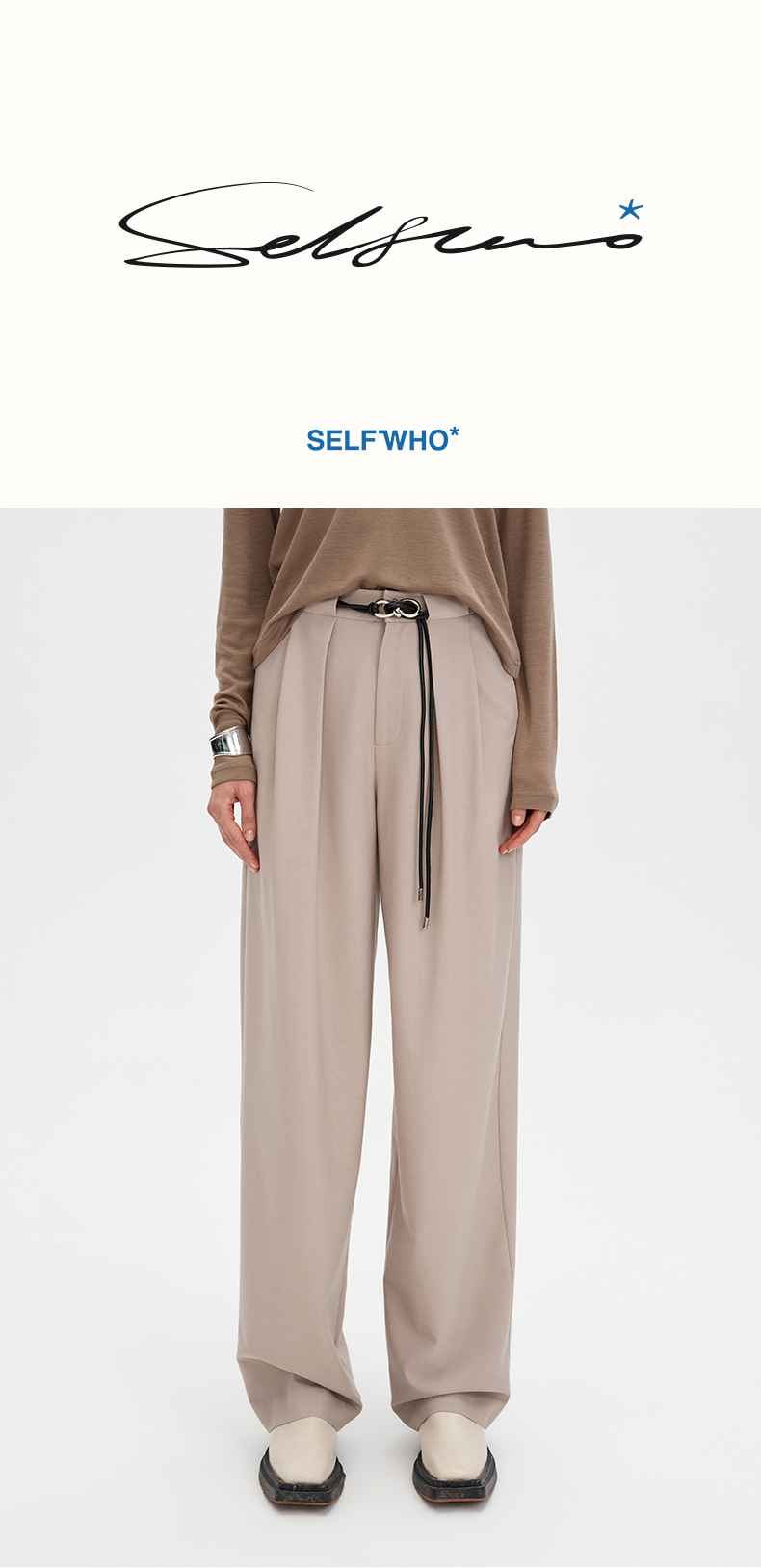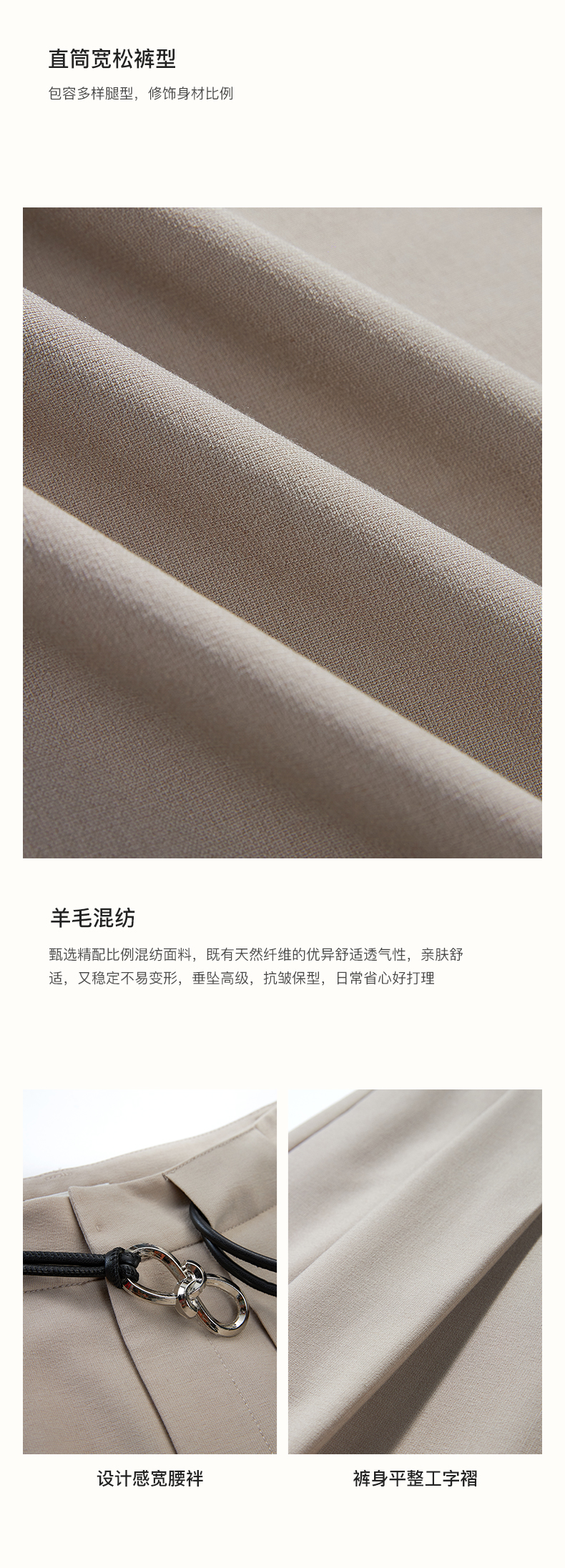 SELFWHO浅卡其羊毛混纺休闲裤西裤女2024秋新款通勤设计感直筒裤
