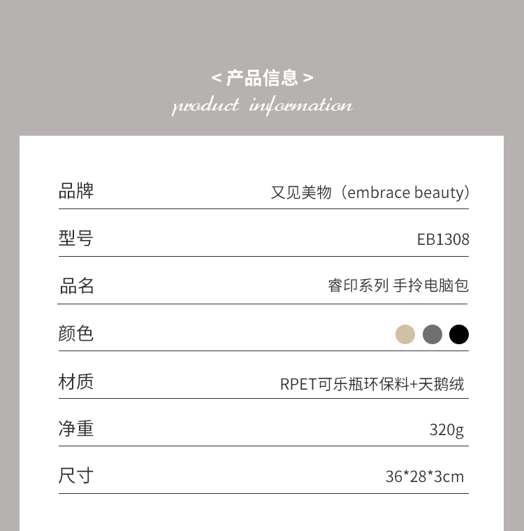 又见美物 RPET材质手拎电脑包 电脑内胆包手提包 EB1308