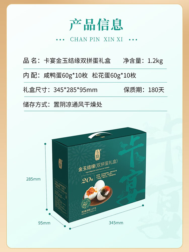 卡宴 鸭蛋 金玉结缘双拼鸭蛋礼盒60g*20枚