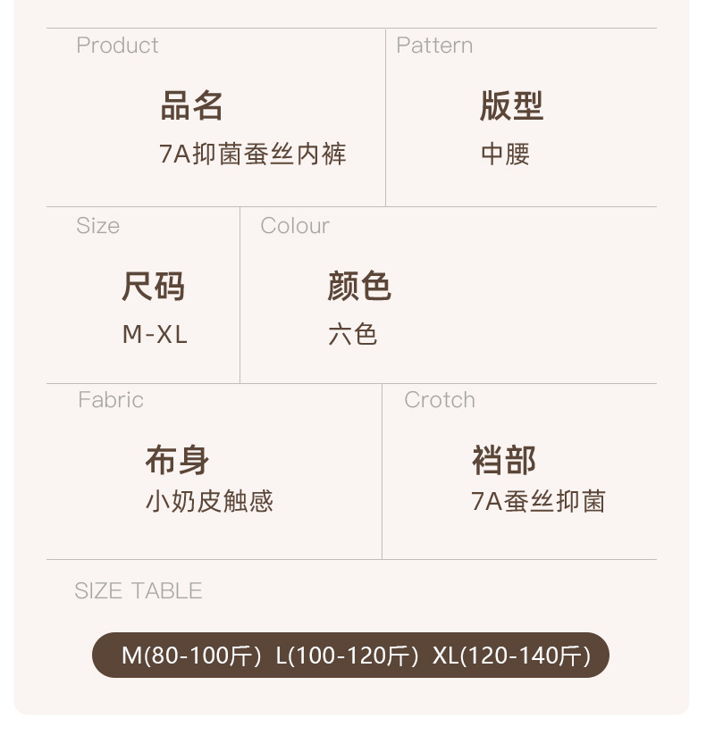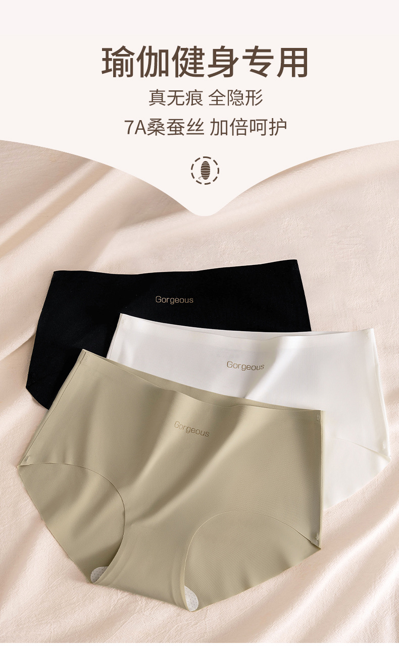 宝娜斯 瑜伽健身女士内裤桑蚕丝抗菌裆不夹臀少女生中腰无痕内裤 心选到家
