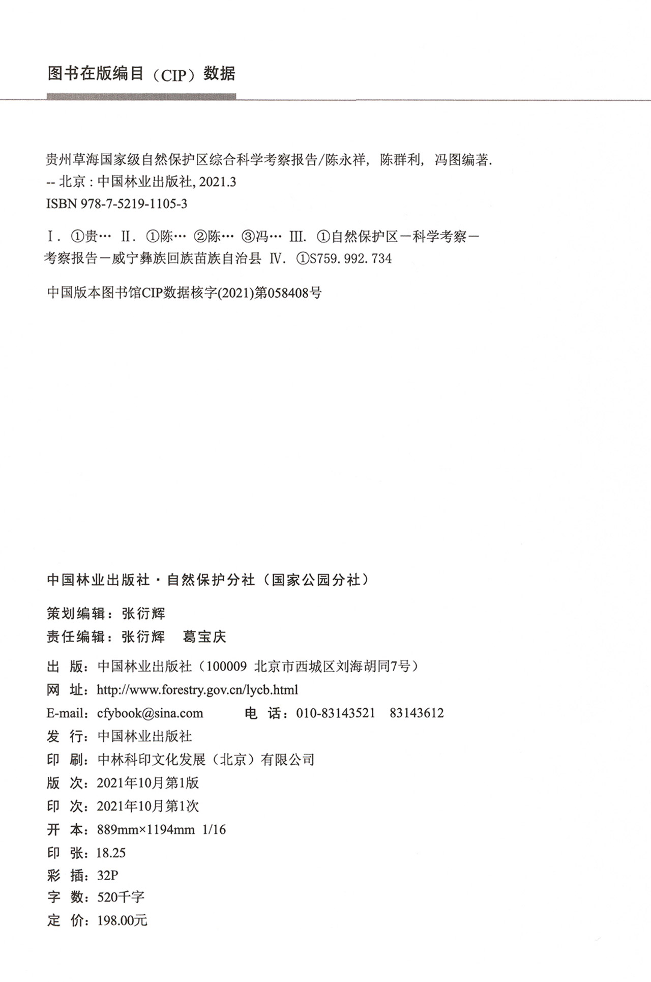 贵州草海国家级自然保护区综合科学考察报告(精) 陈永祥//陈群利//冯图 1105 中国林业出版社