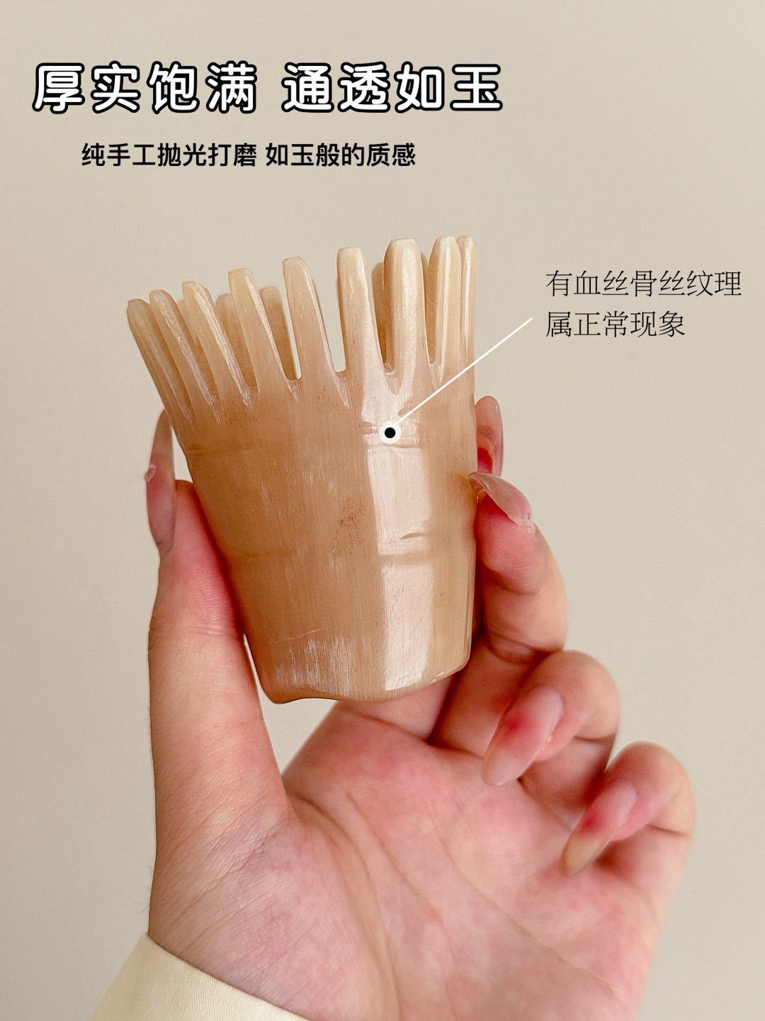 从一把粗糙的牛角,变成色泽莹亮牛角经络按摩梳