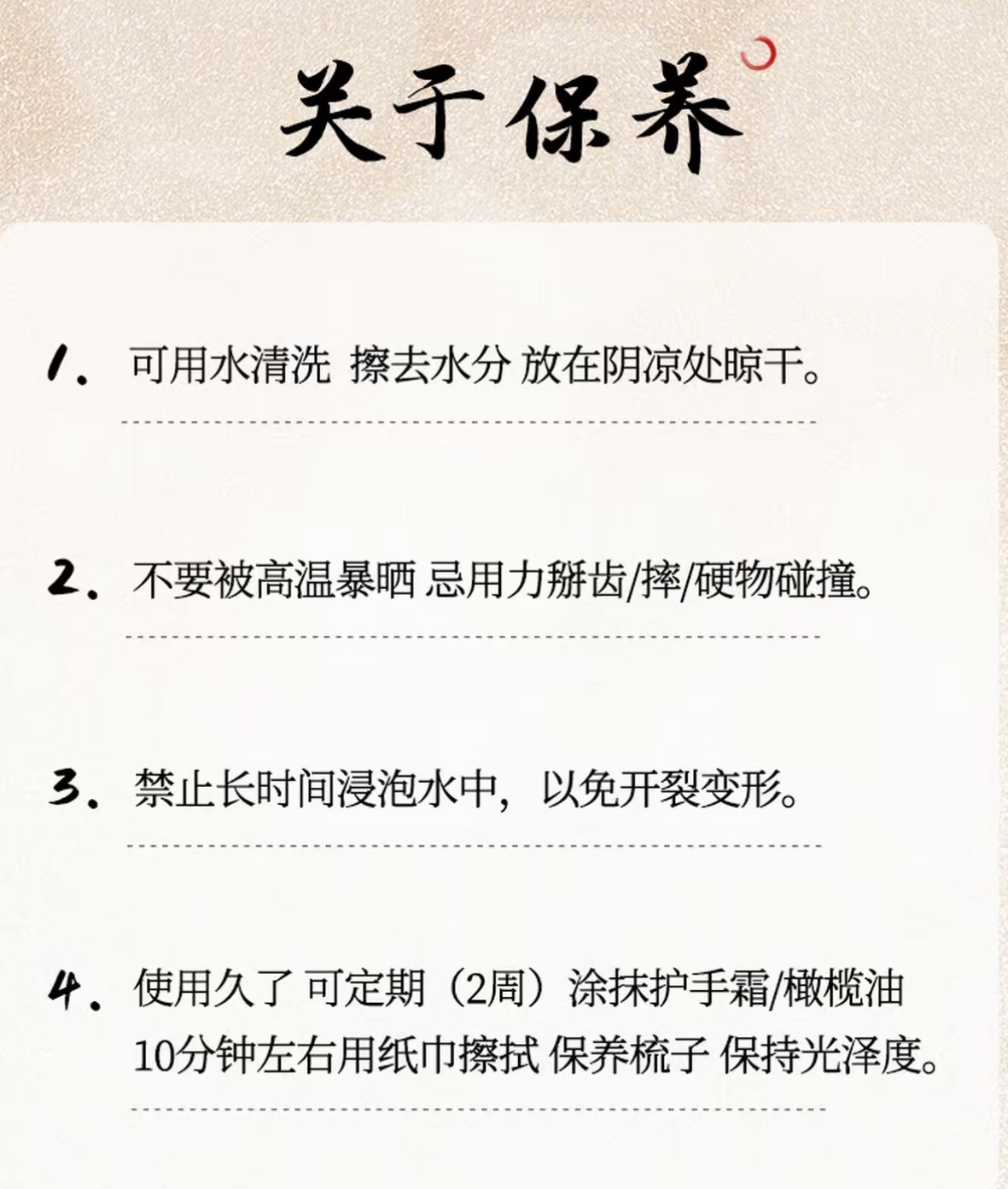 牛角梳由角质化蛋白组成,未经过多处理时,遇水会散发出刺鼻气味,这种气味可能让人感觉难闻