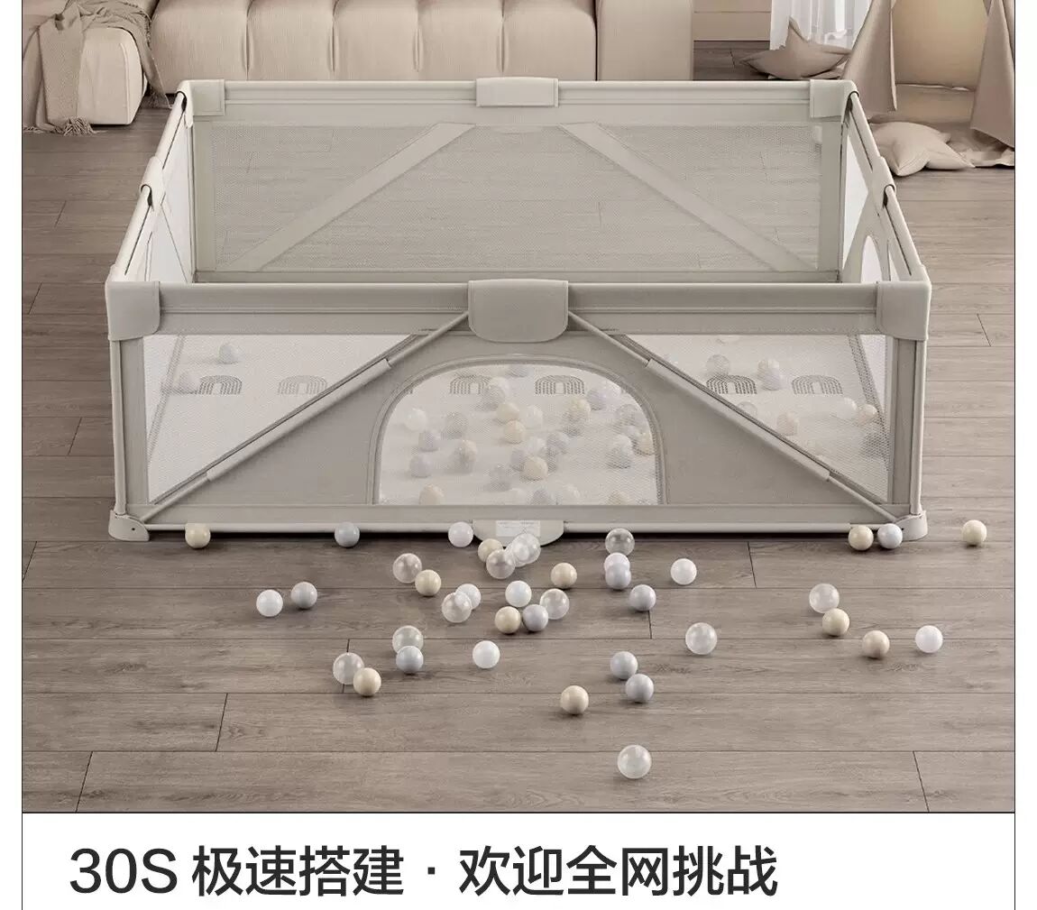 贝易免安装折叠围栏防护栏婴儿爬爬垫宝宝游戏室内家用客厅栅栏【送无纺布收纳袋+学步手拉环+50海洋球+伙伴龙故事机+满1198再送独角兽摇马五合一】