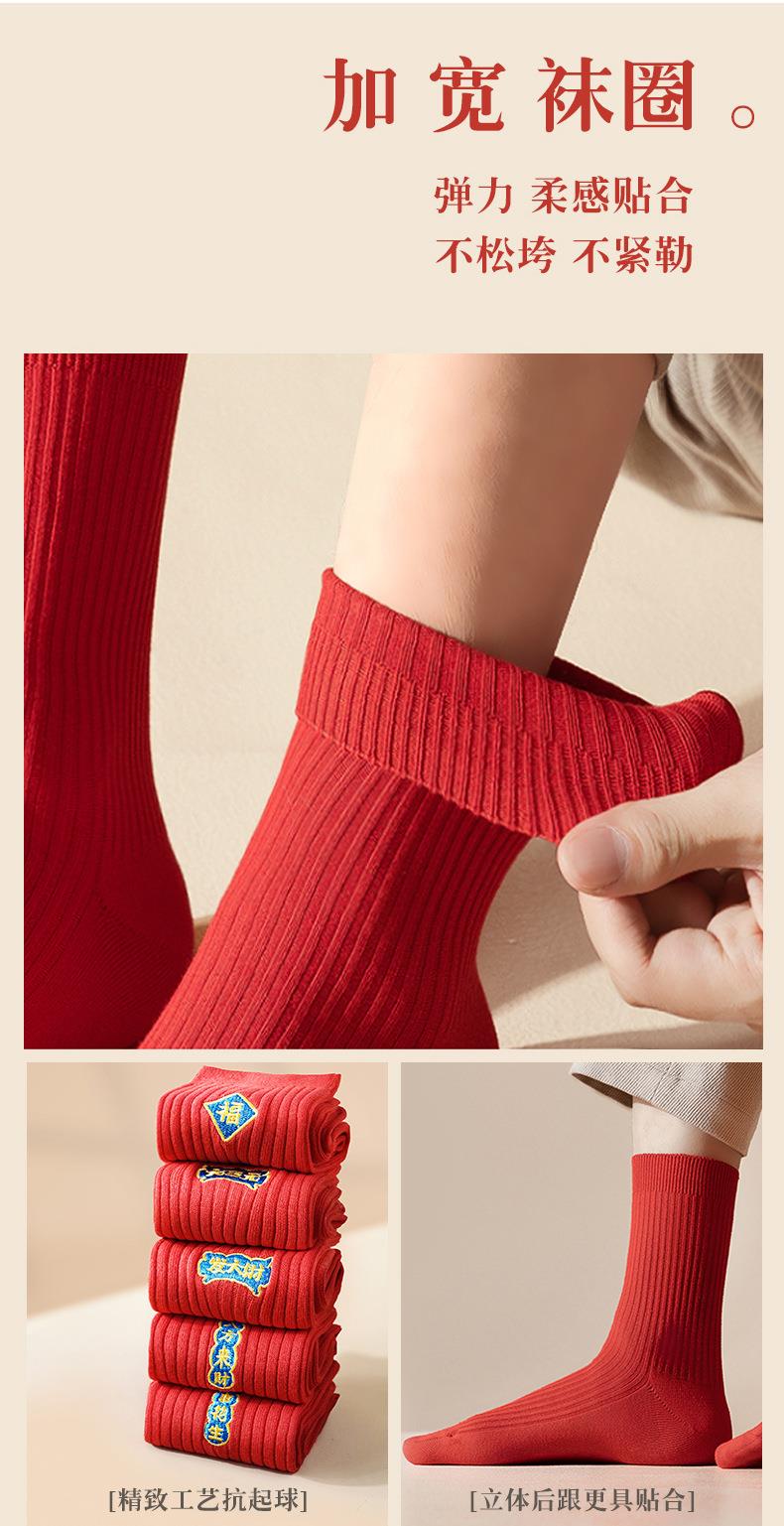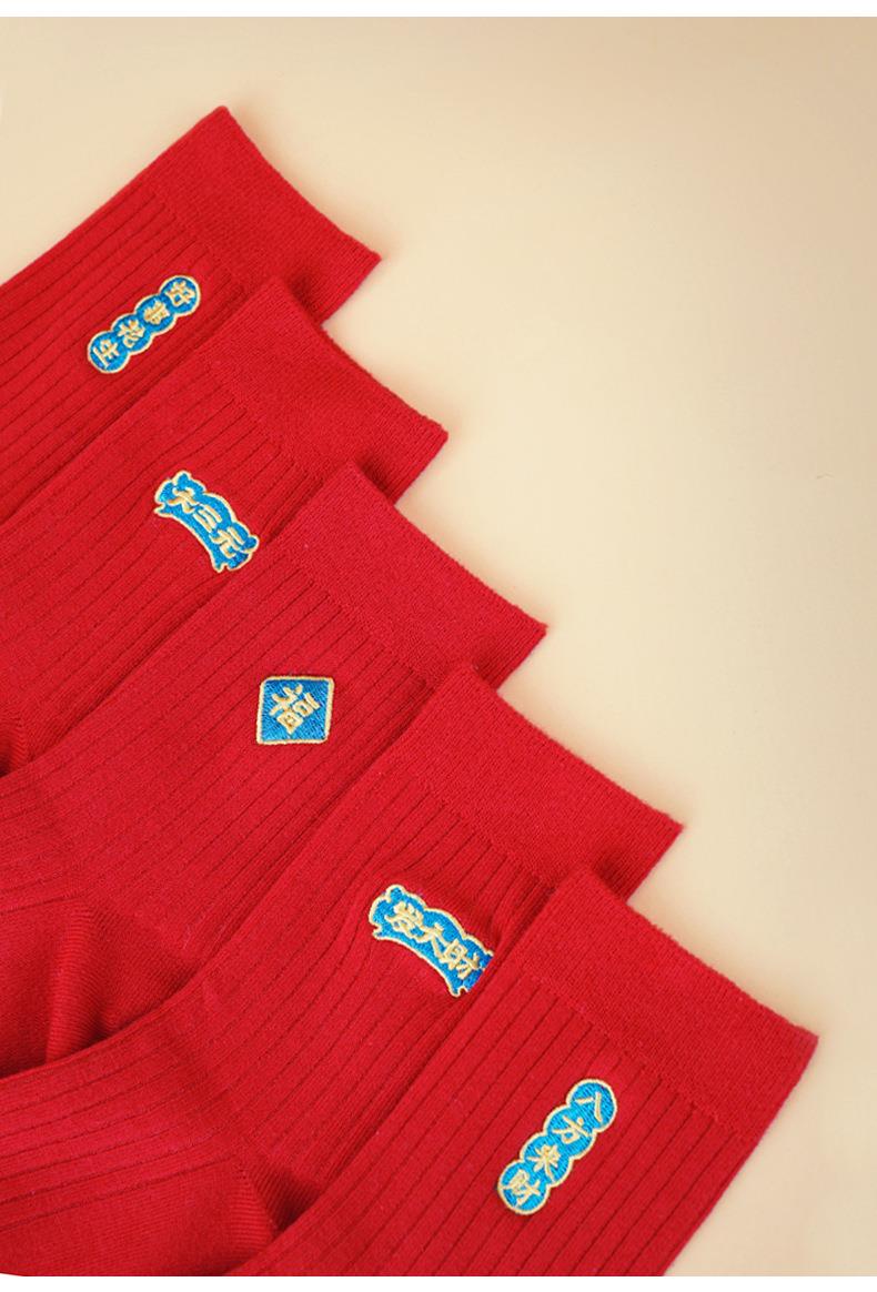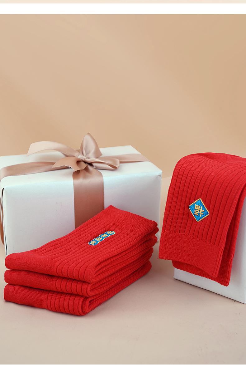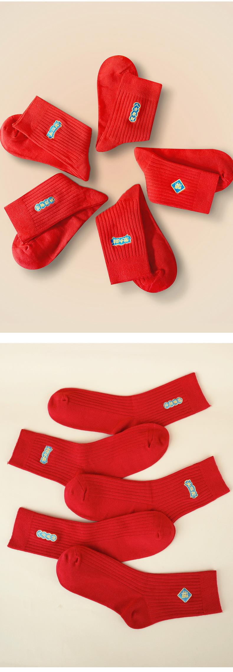 【新款本命年红袜子】中筒情侣刺绣结婚袜子福字发财纯棉男士长袜