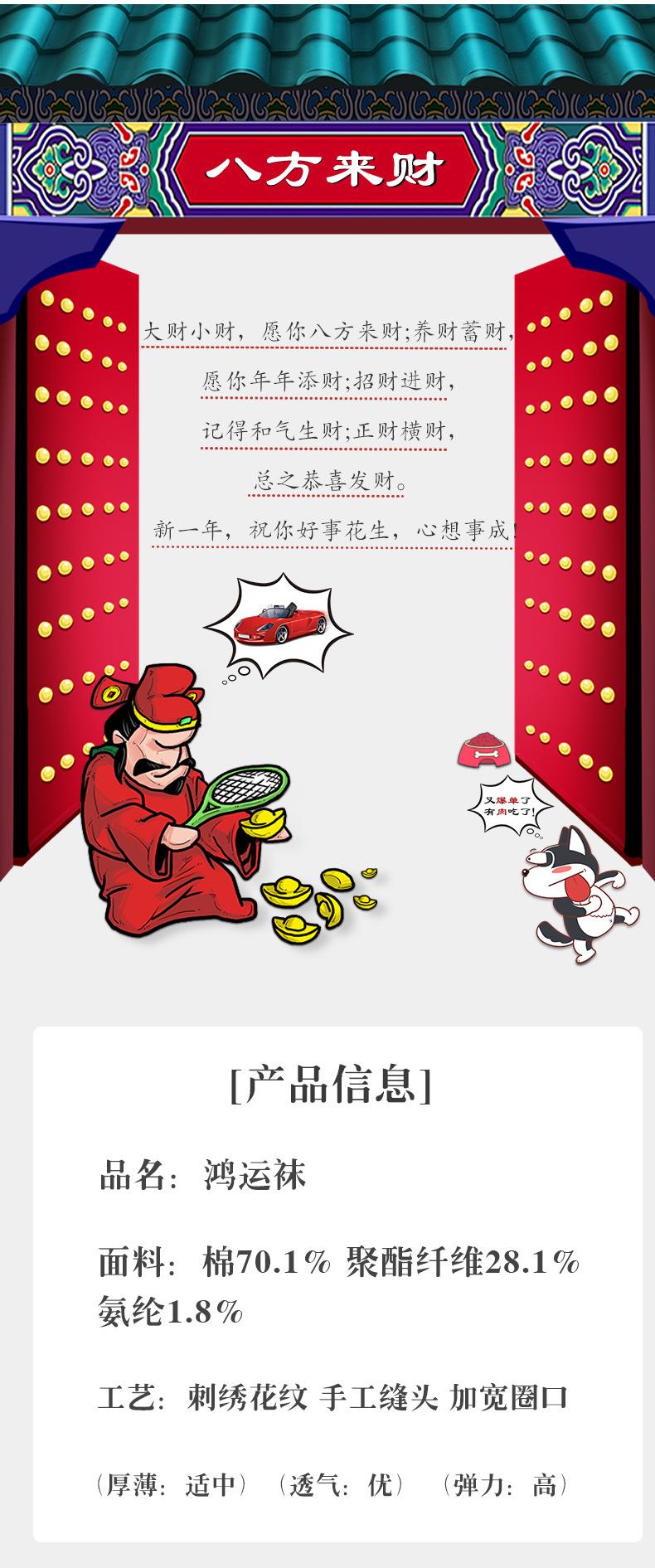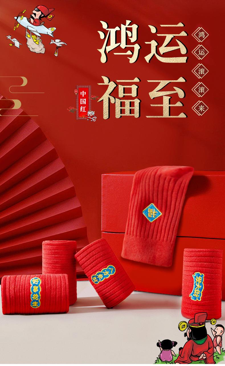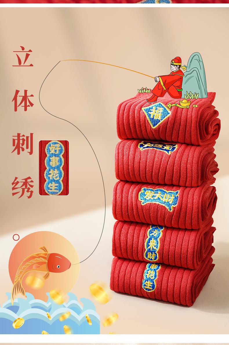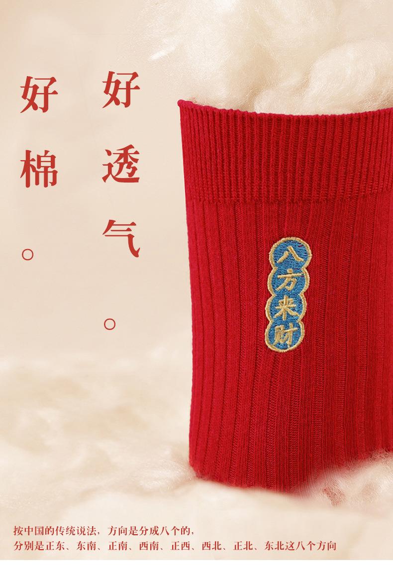 【新款本命年红袜子】中筒情侣刺绣结婚袜子福字发财纯棉男士长袜