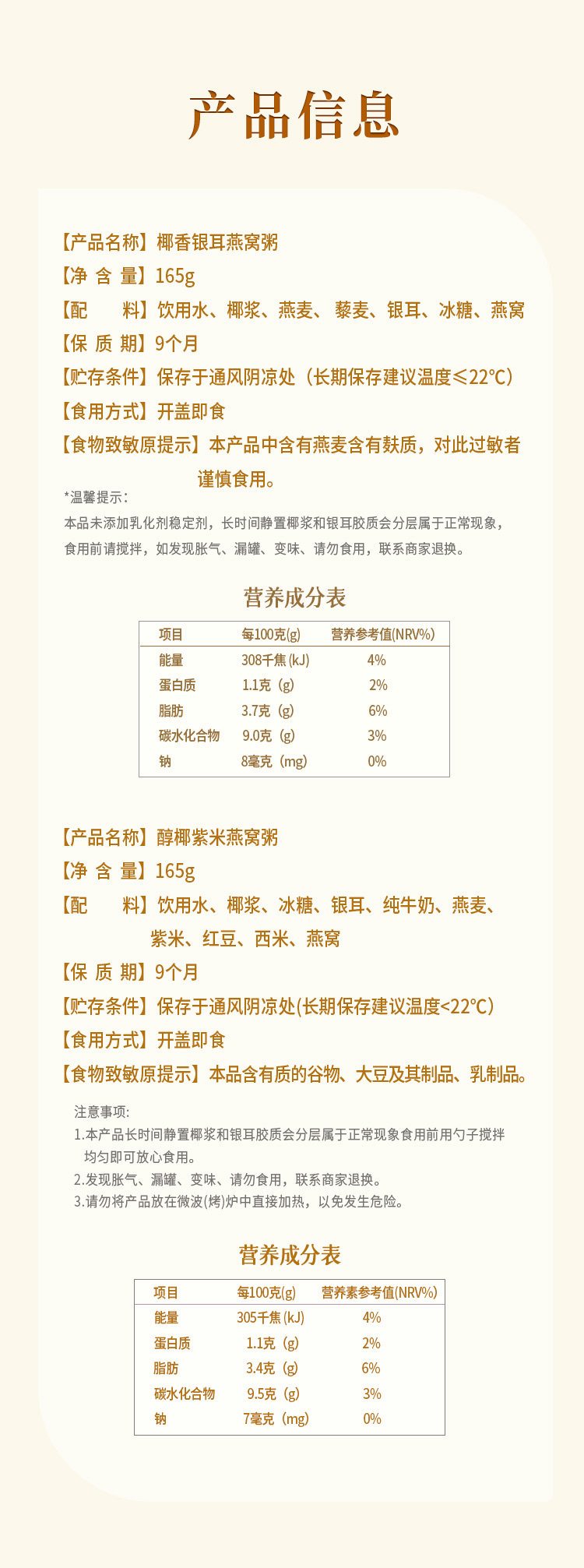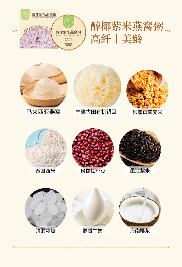 滋时椰香银耳醇椰紫米燕窝粥孕妇速食免煮早餐粥代餐F