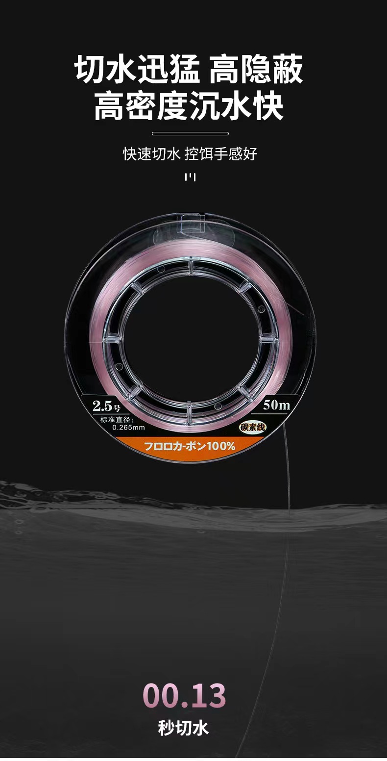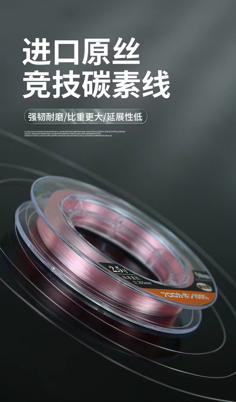 江左户外路亚粉碳线50米粉色碳素鱼线进口路亚前导线