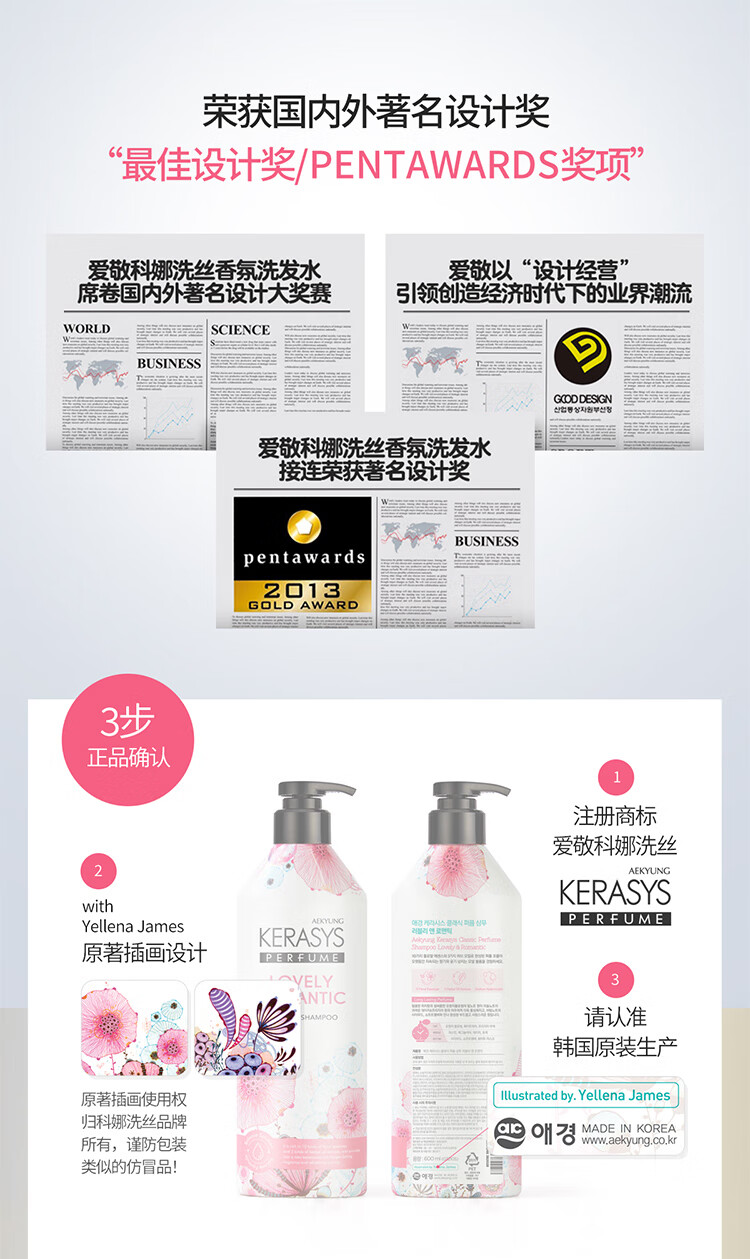 爱敬科娜洗丝韩国进口经典香氛洗发水去屑止痒控油洗发液600ml/瓶