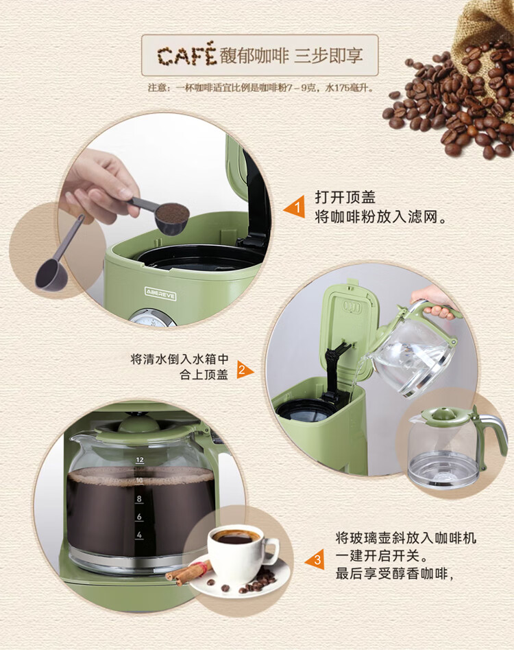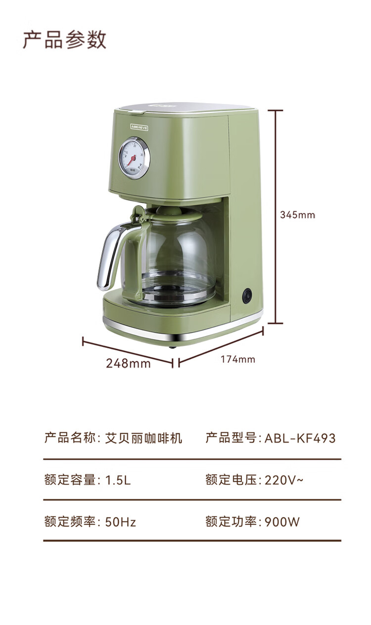 艾贝丽(Abereve)咖啡机 美式滴漏咖啡机ABL-KF493