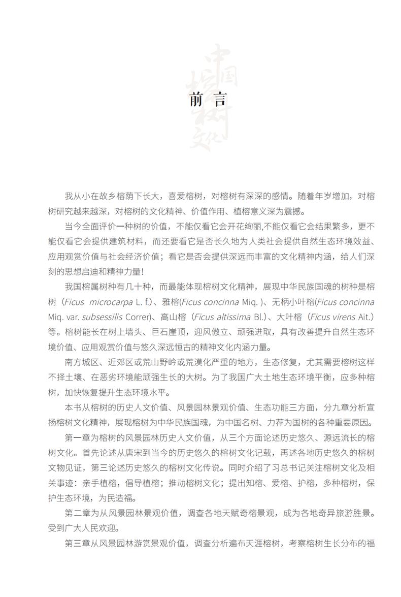 本书是系统研究榕树宣扬榕树为中国名树、力荐为国树的专著,从榕树的风景园林历史人文景观价值、风景园林游赏景观价值、风景园林景观功能三方面,全面阐述榕树的历史文化价值、天赋异彩、遍布天涯、形态优美、造福百姓,也详细阐述榕树国魂精神与国学文化精神,从而阐述宣扬榕树为中国名树、力荐为国树的重大意义和重要性等几个重要原因。 全书集学术性、伦理性、文学性、趣味性、操作性为一体。呼吁国民热烈支持榕树争评国树,同时也是介绍榕树不可多得的参考书。