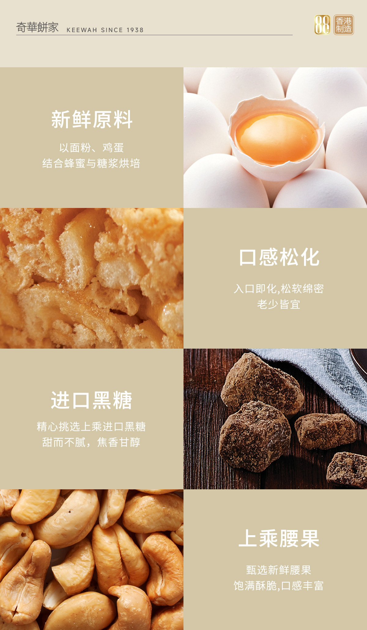 奇华饼家始创于1938年,八十六年来秉承传统制作港式饼食、嫁喜礼饼、中秋月饼及时令食品。奇华更推出代表香港的手信礼品系列,成为港人及旅客送礼的必买手信,奇华食品均由香港制造,质量保证,值得信赖。