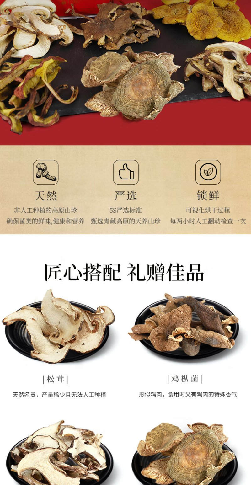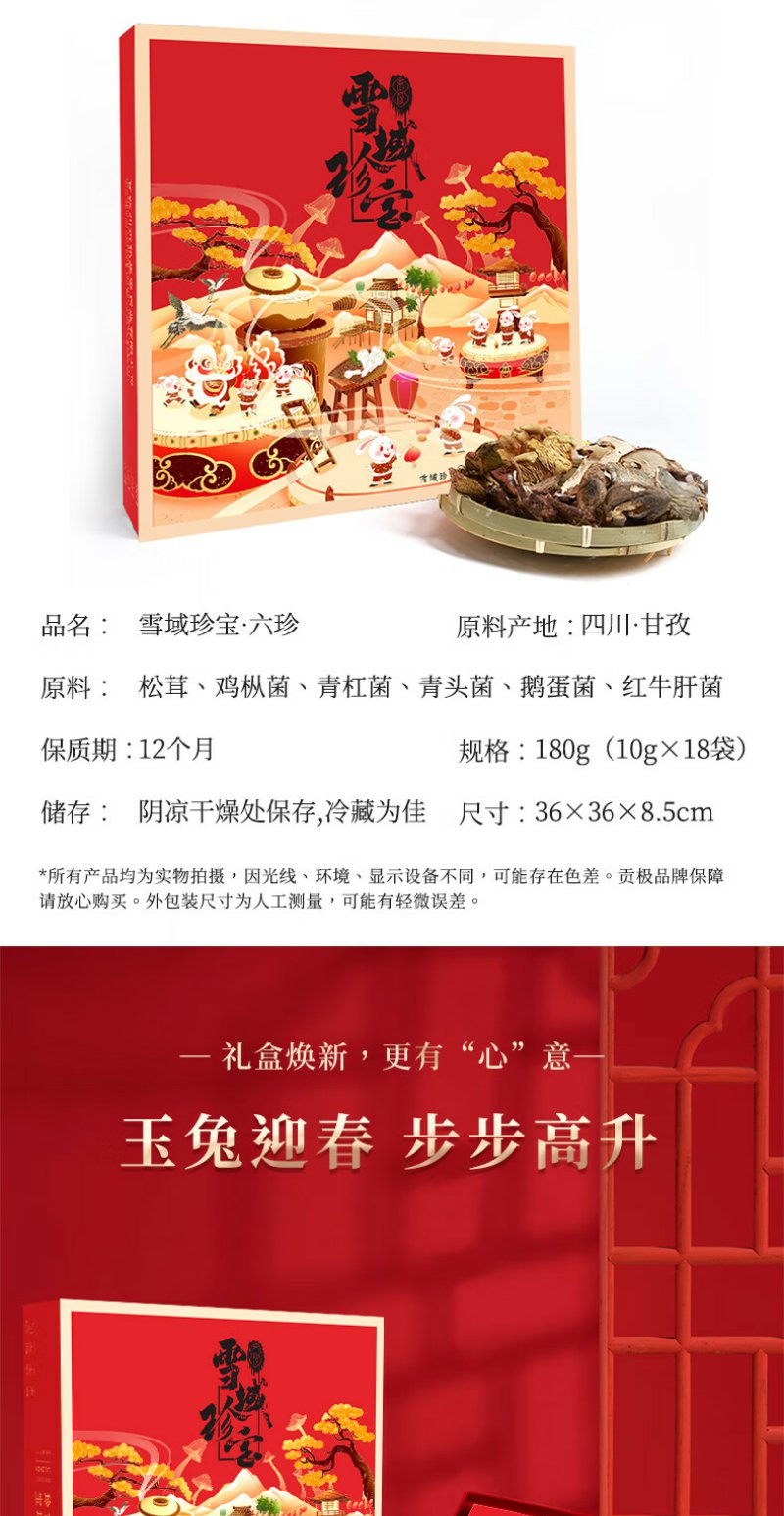 贡极 雪域六珍松茸菌菇礼盒山珍干货 六珍礼盒 180g