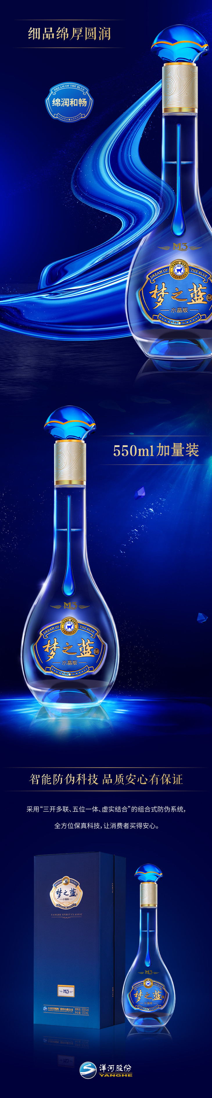 拍两瓶898元!40.8度550ml梦之蓝M3(水晶版)-绵柔型