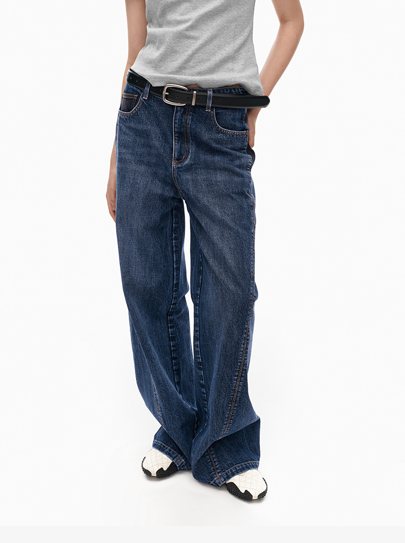 NUTH斜领露肩背心洗褪做旧弹力修身单肩背心女 雾霾蓝色/藏蓝色