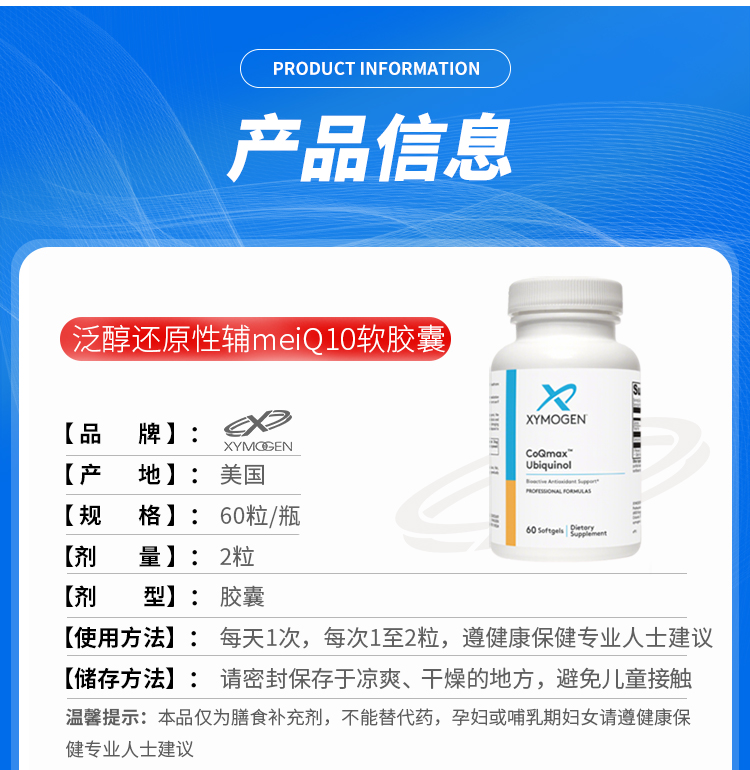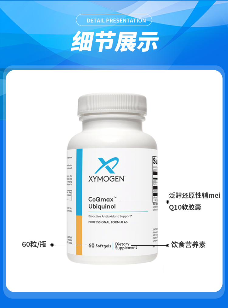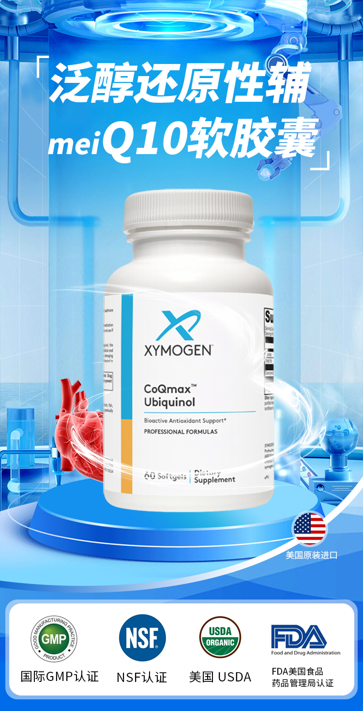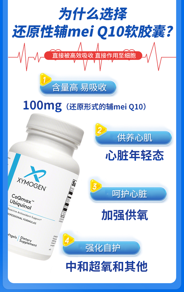 【效期至28年8月】泛醇还原性辅酶Q10 100mg软胶囊 XYMOGEN CoQmax Ubiquinol 60粒/瓶