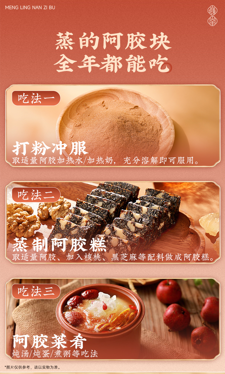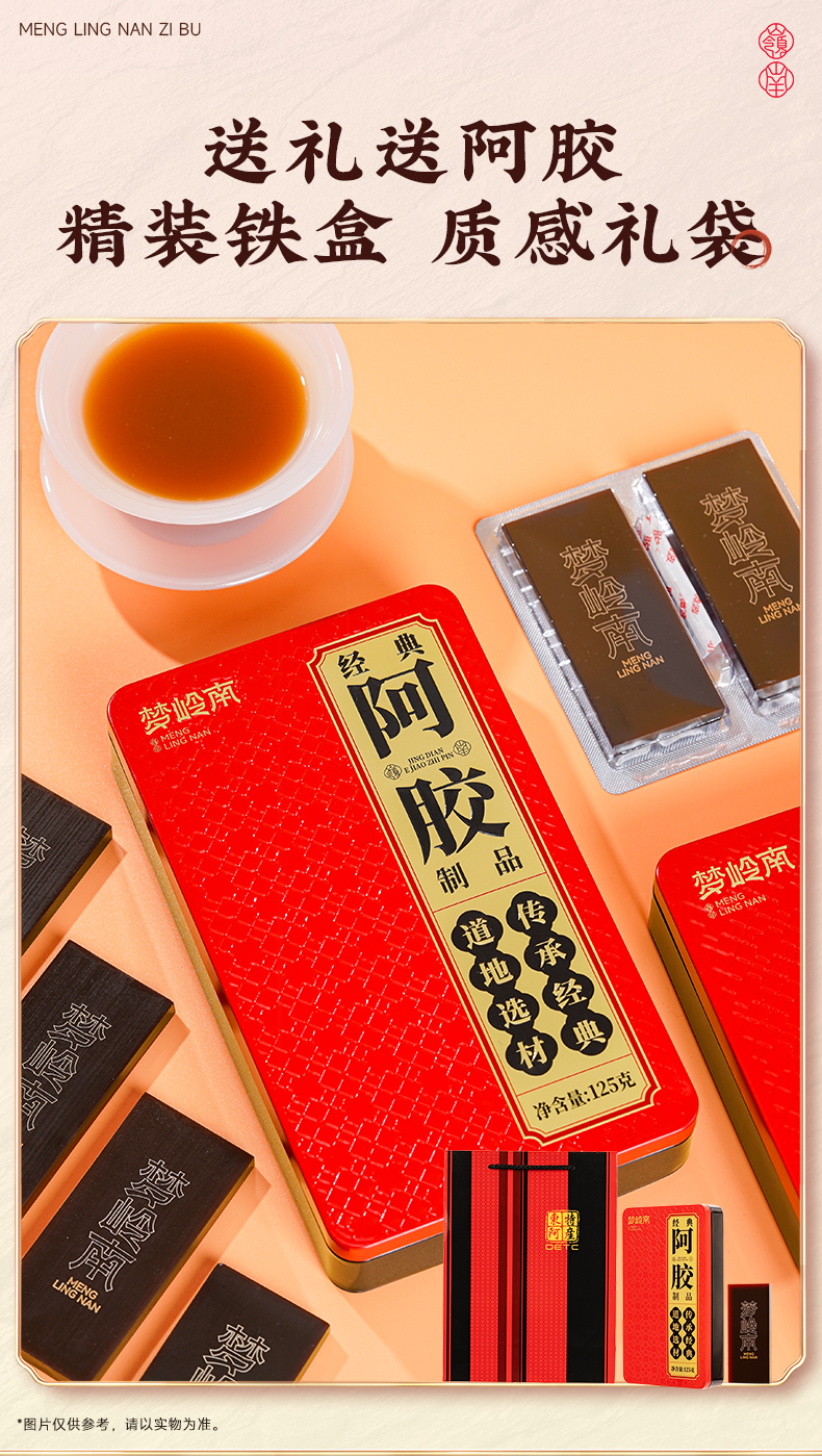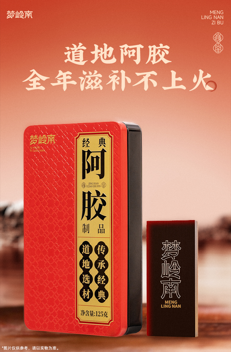 【纯正阿胶 气色红润】梦岭南阿胶块125g盒装 纯正驴皮阿胶 无工艺添加 健康养生