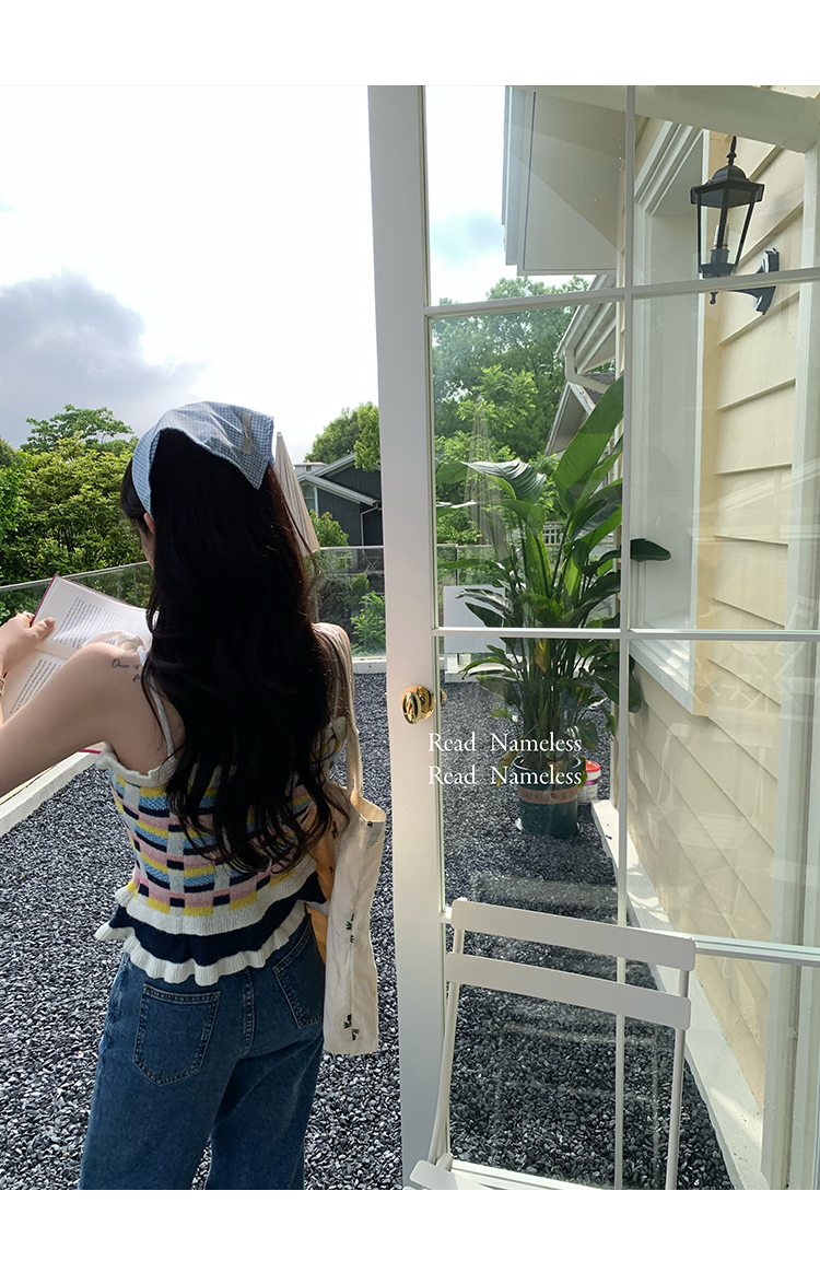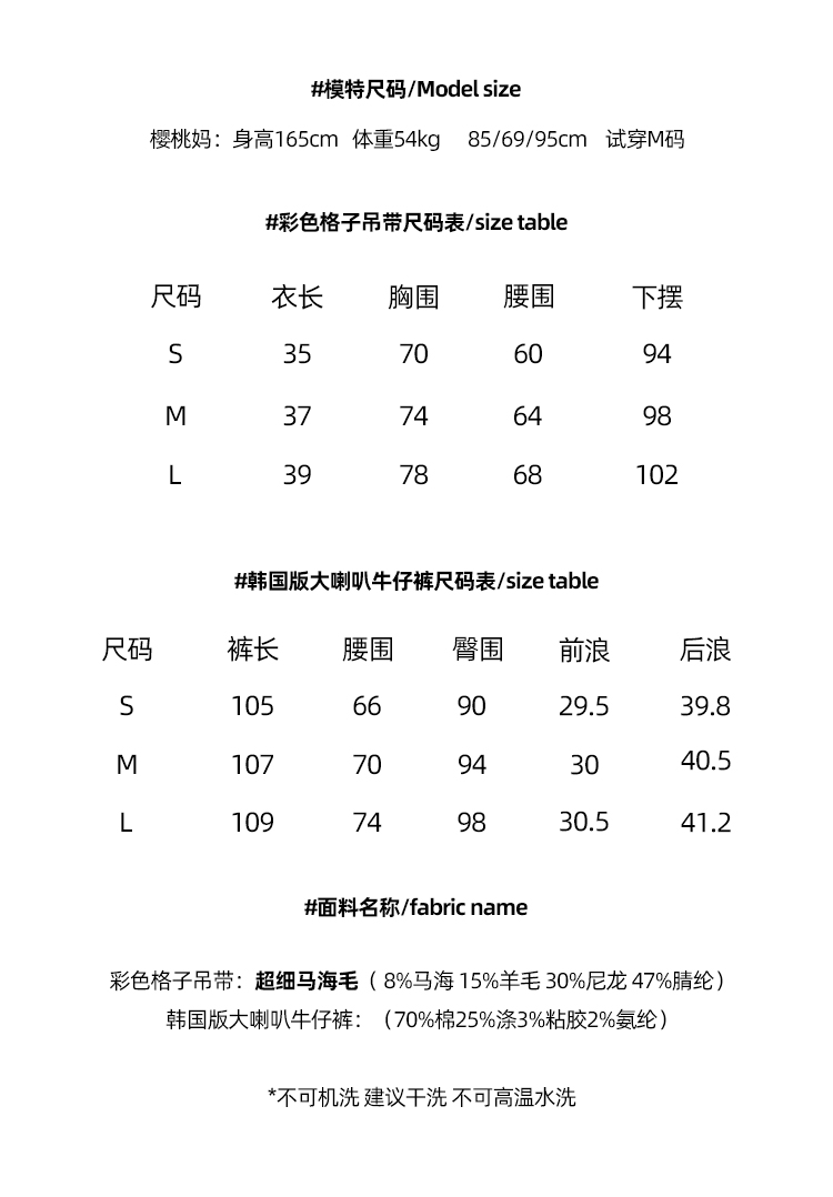 Read Nameless/彩色格子吊带+韩国版大喇叭牛仔裤