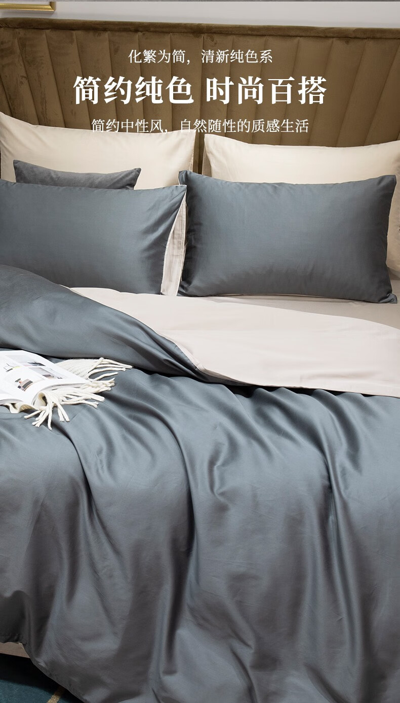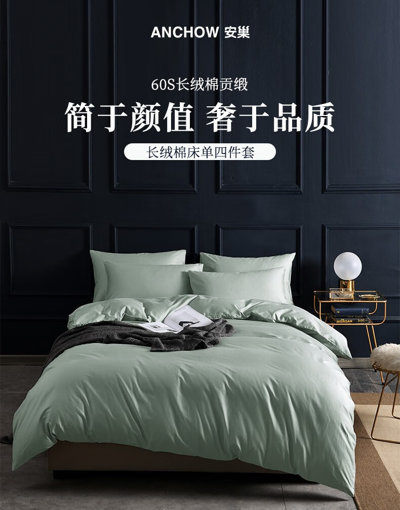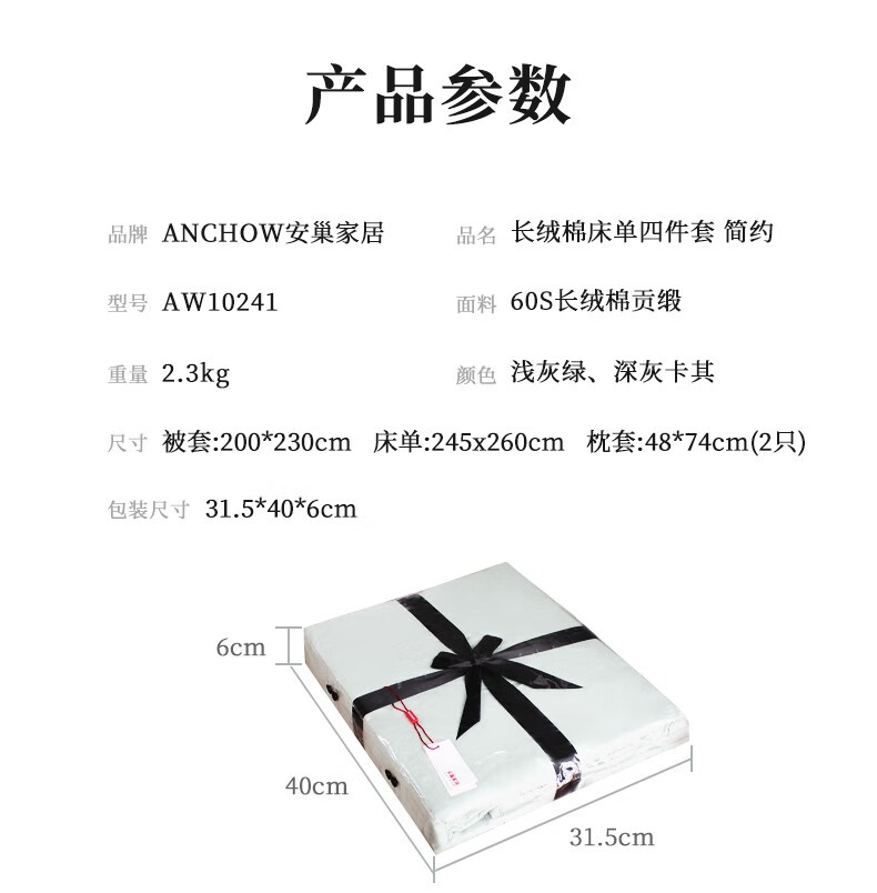 安巢家居 长绒棉床单四件套 简约 AW10241 灰绿