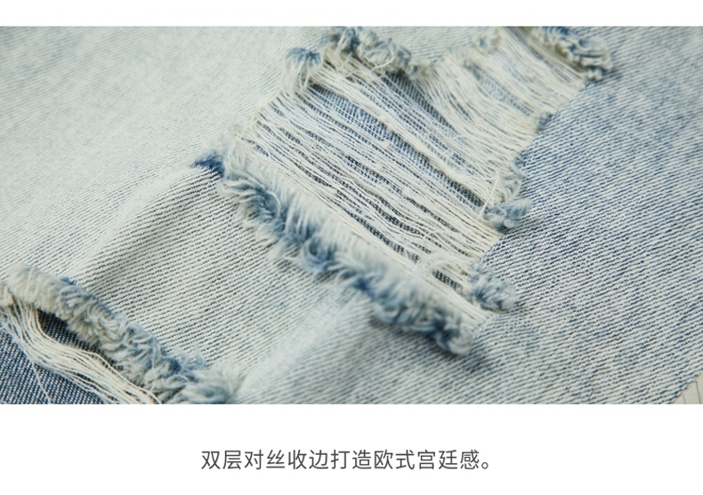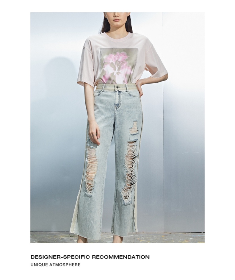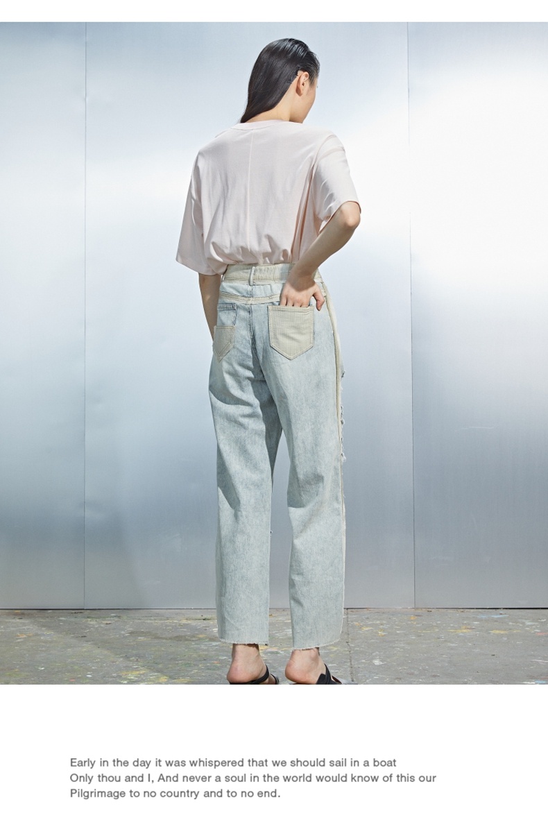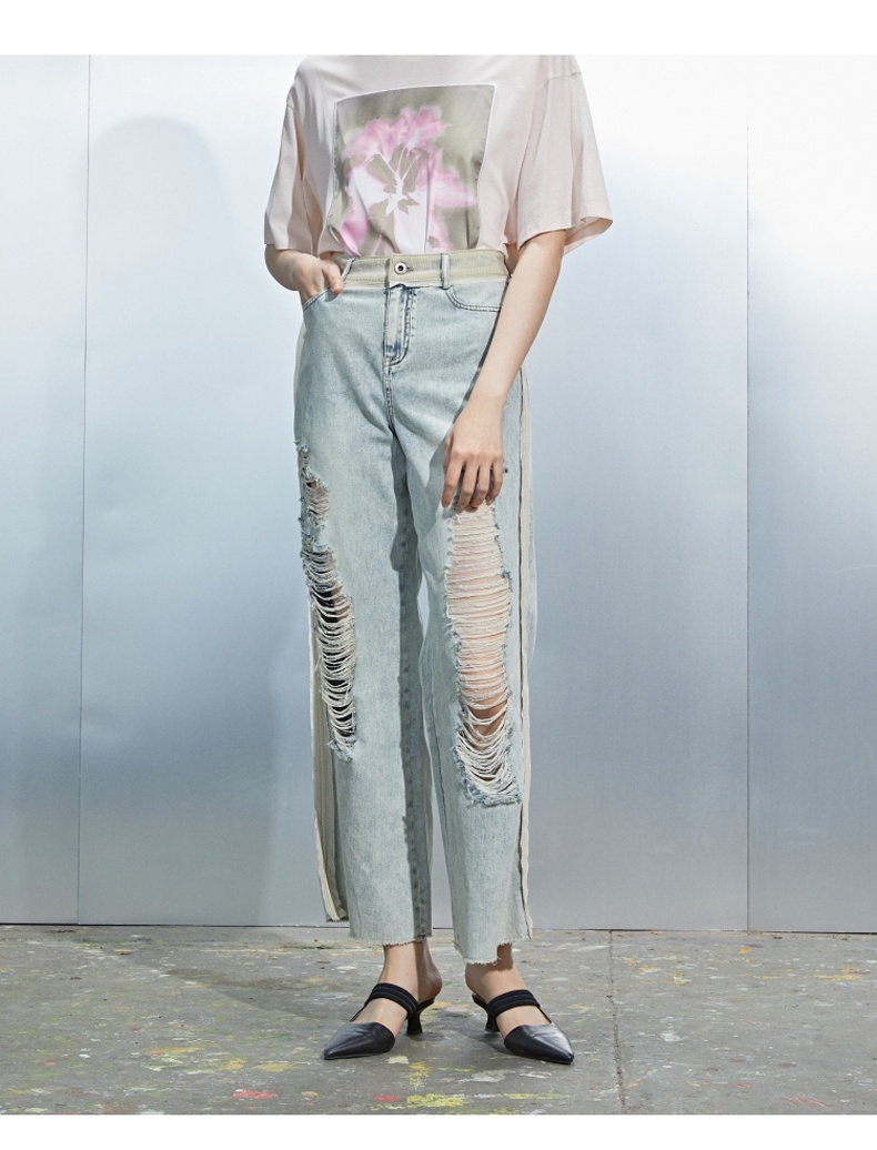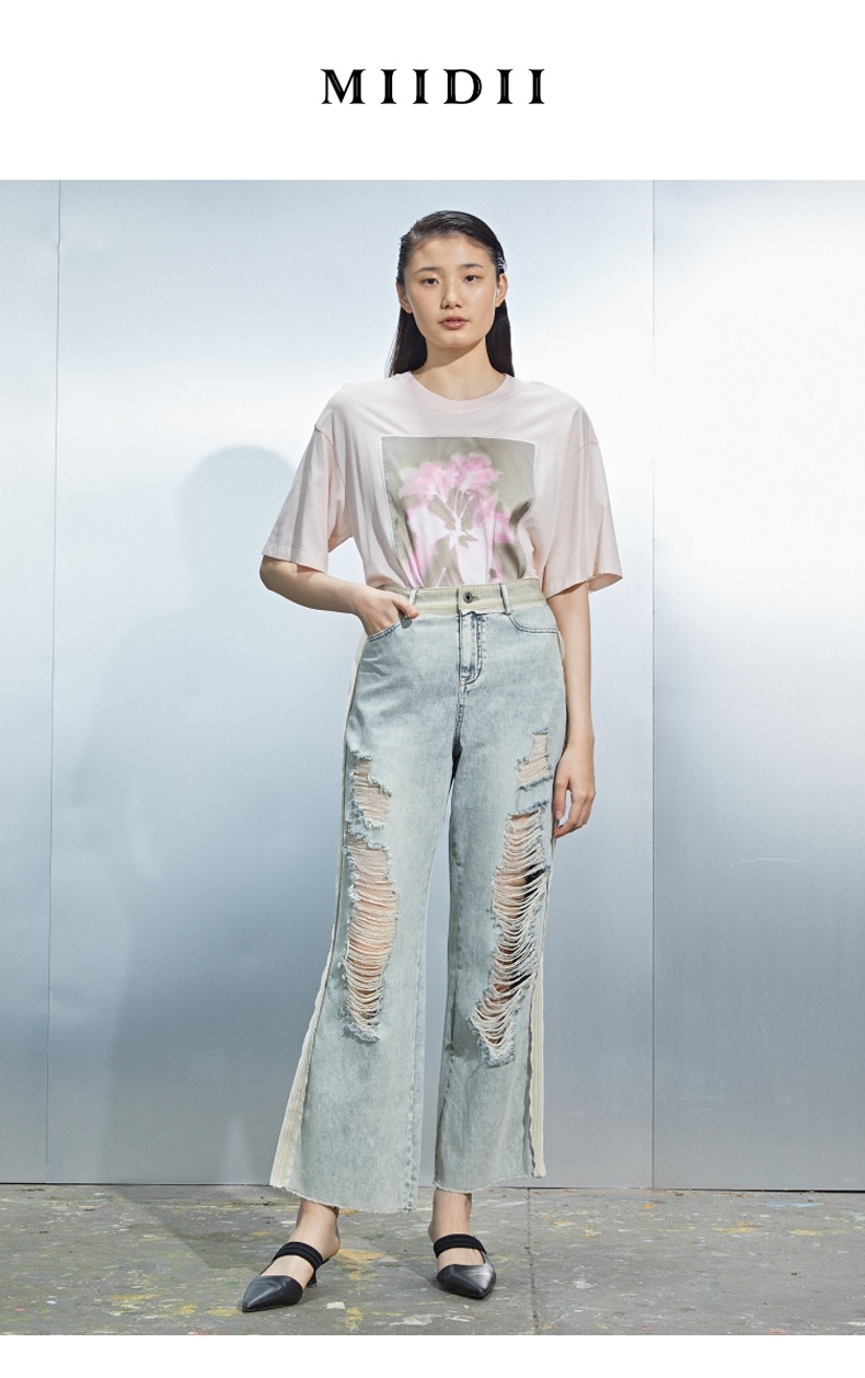 MIIDII/谜底21夏新品个性拼接破洞洗水直筒牛仔裤女212MK0715