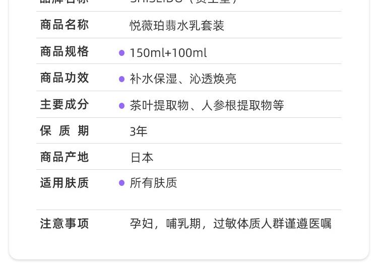资生堂悦薇珀翡紧颜亮肤水乳套装(清爽型)150ml+100ml