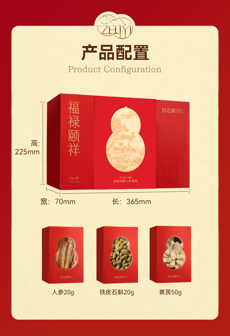 甘之颐 福禄颐祥礼盒 90g/盒 人参铁皮石斛黄芪原料礼盒 三味珍萃 礼献安康