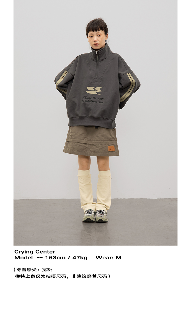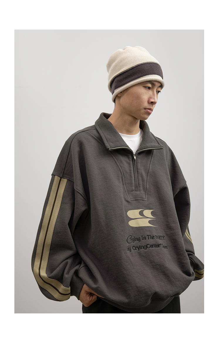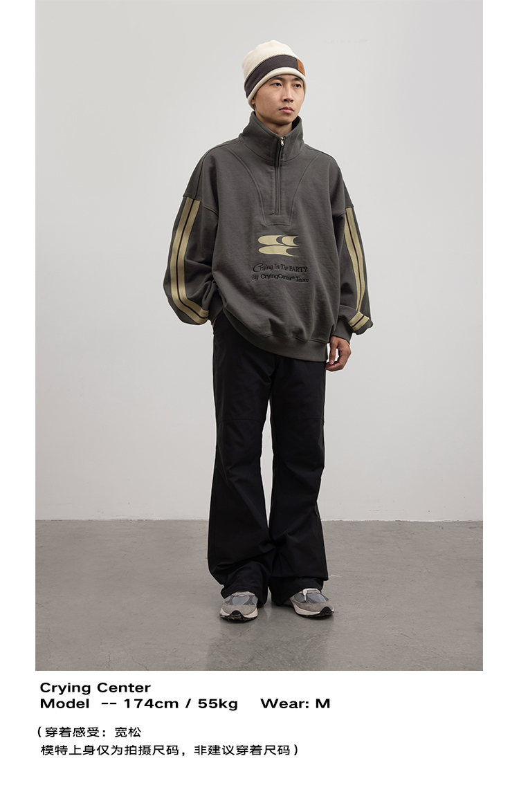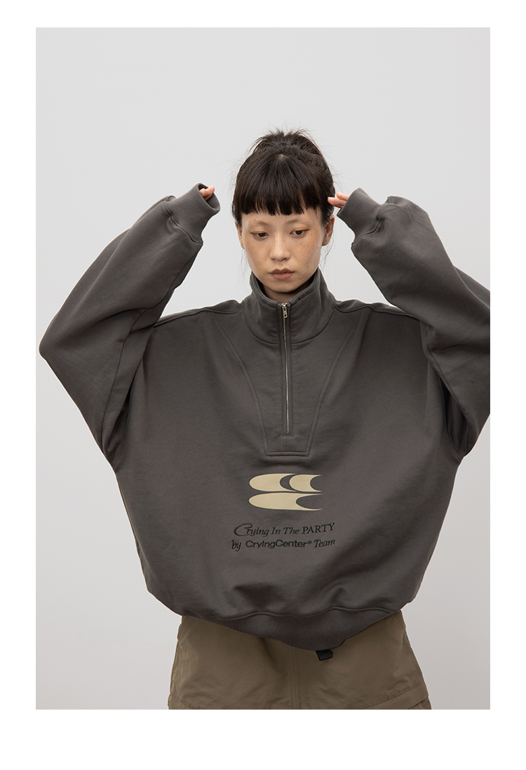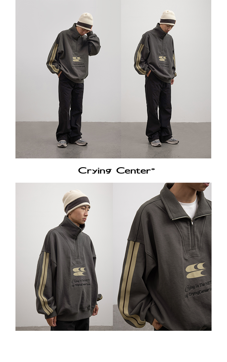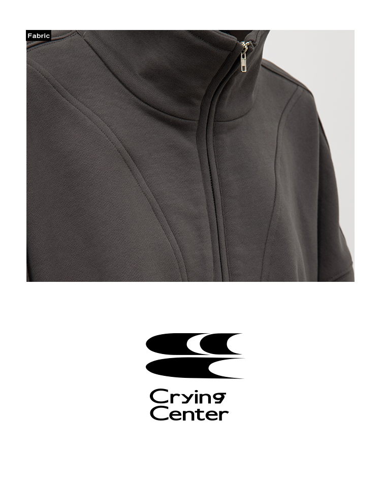 CryingCenter 含蓄的灰拉链高领卫衣 宽松LOGO运动卫衣 哭喊中心