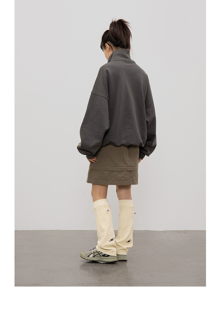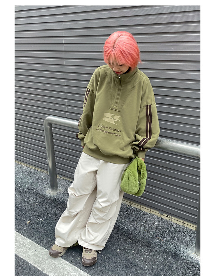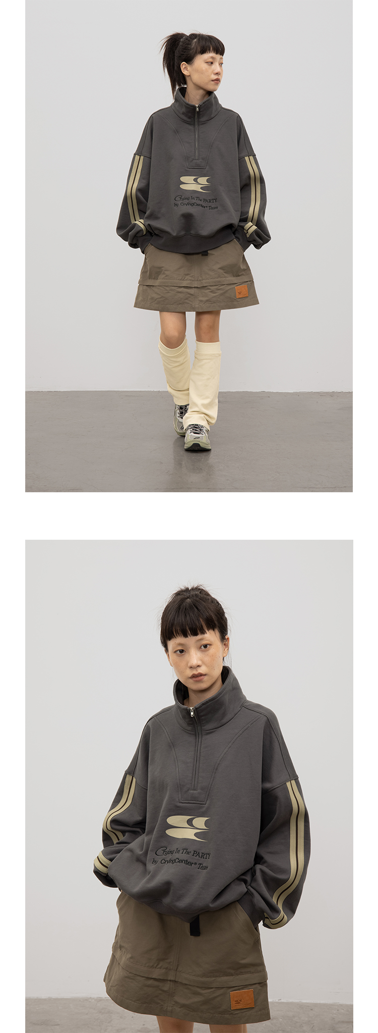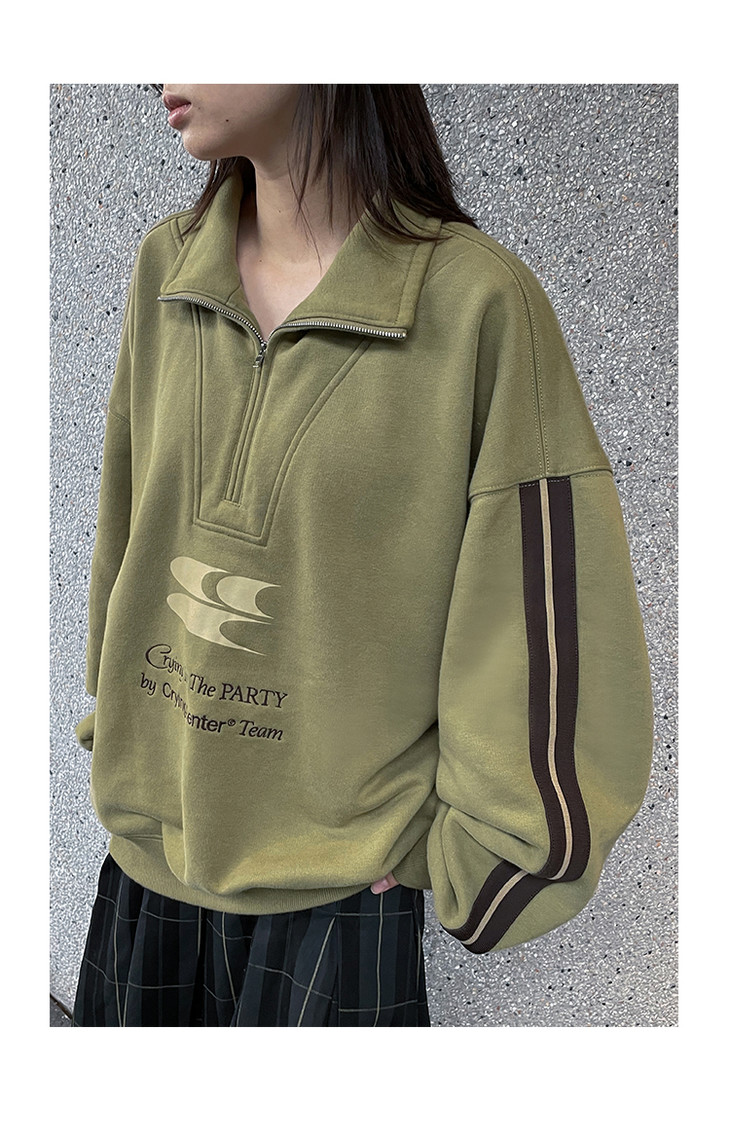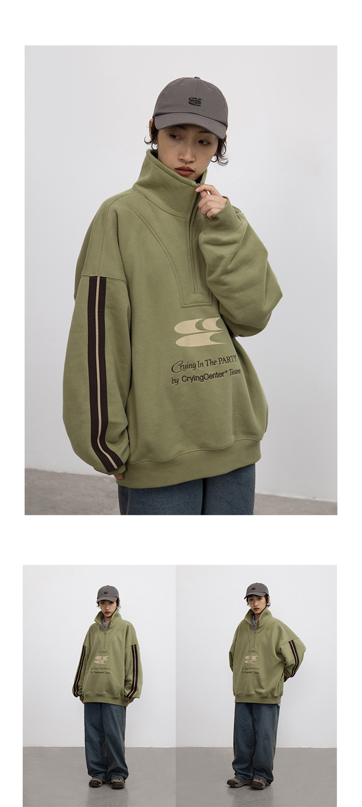 CryingCenter 含蓄的灰拉链高领卫衣 宽松LOGO运动卫衣 哭喊中心