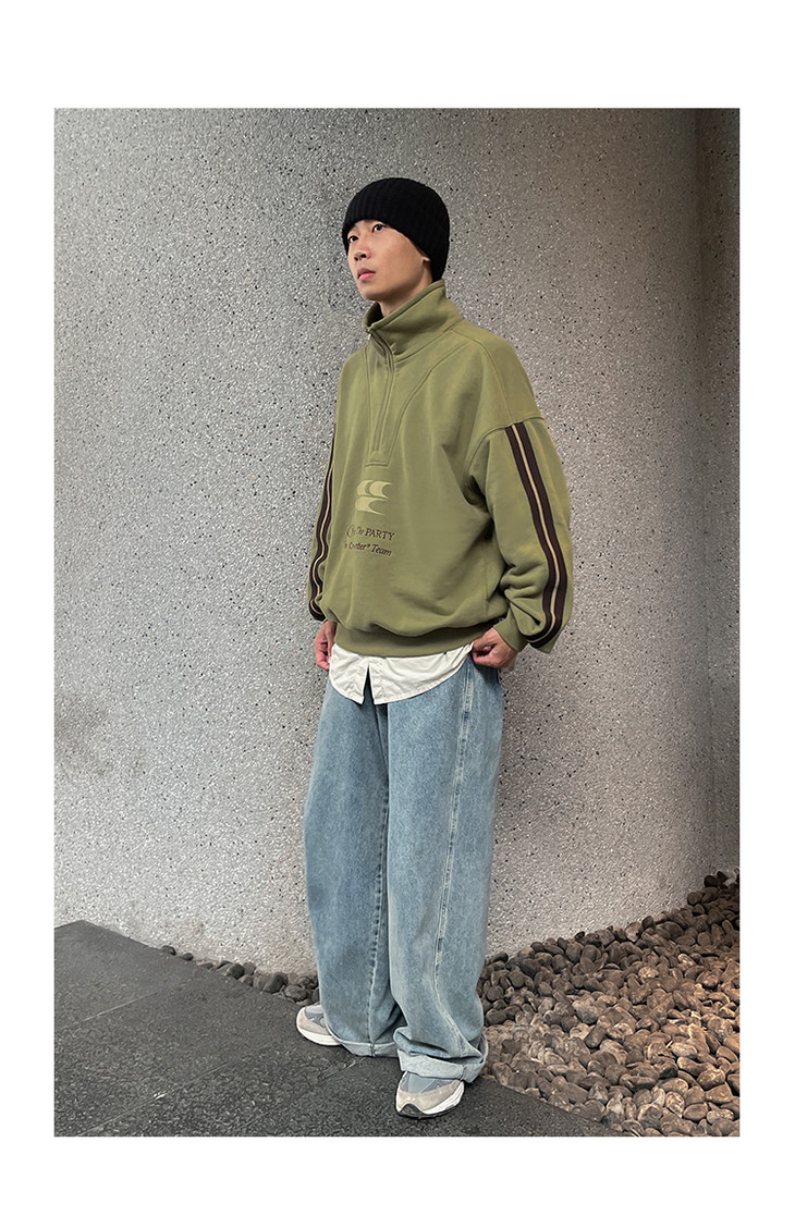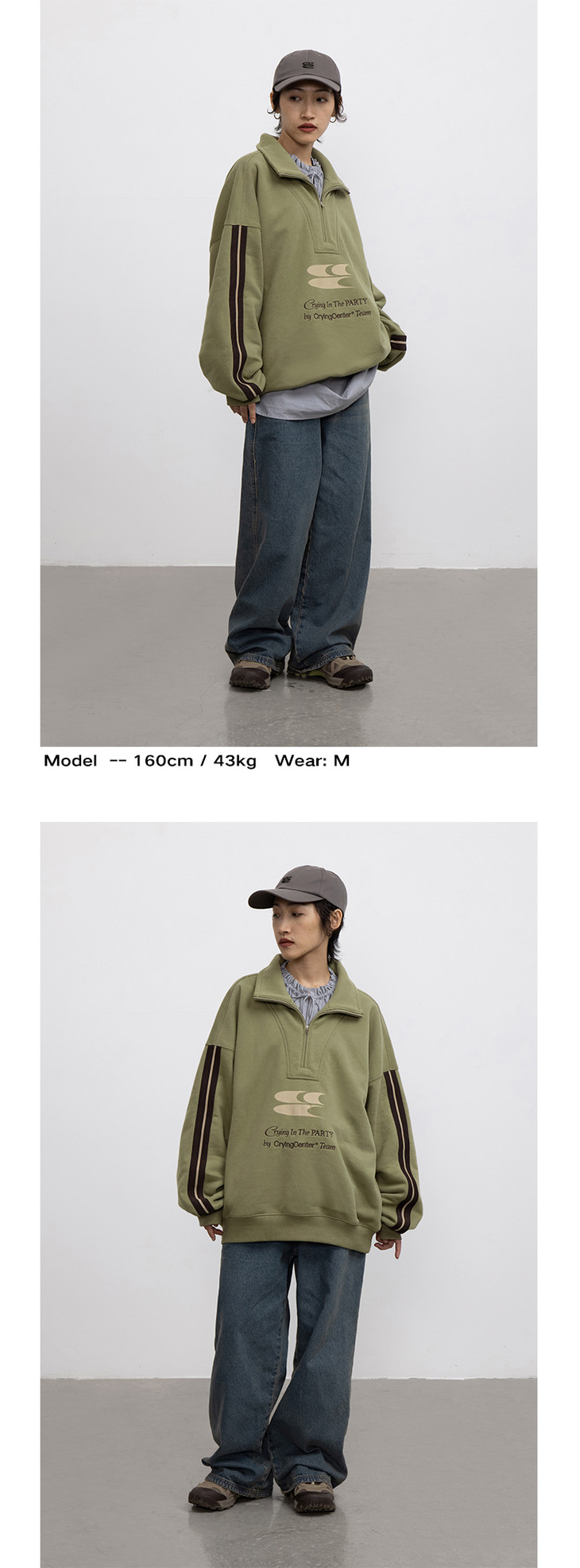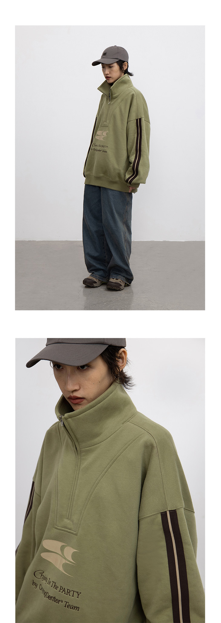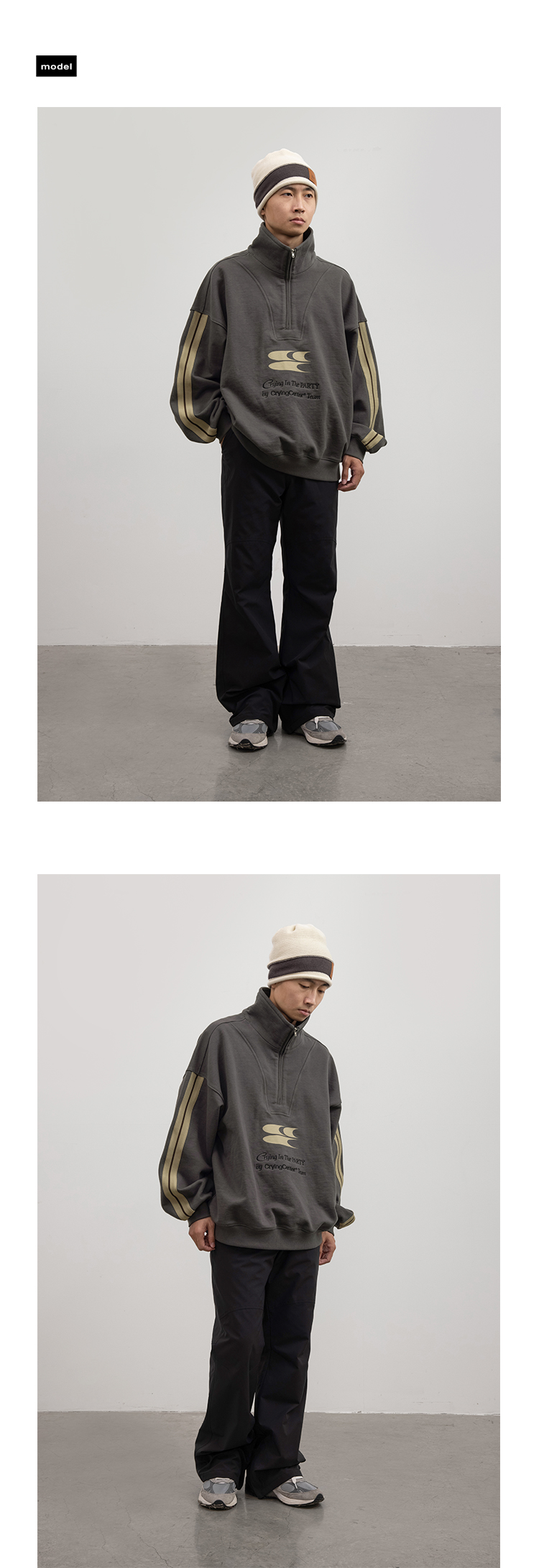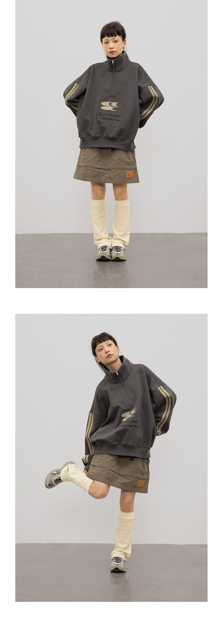 CryingCenter 含蓄的灰拉链高领卫衣 宽松LOGO运动卫衣 哭喊中心