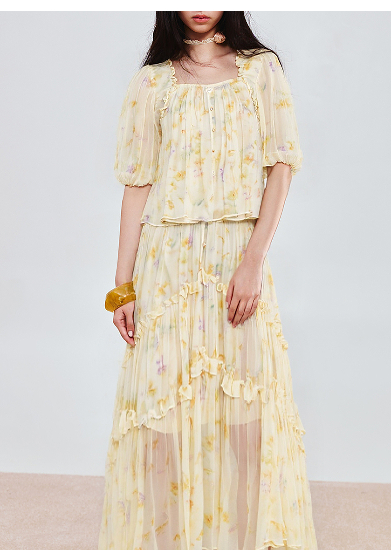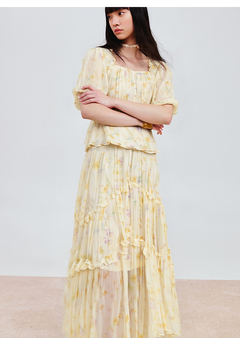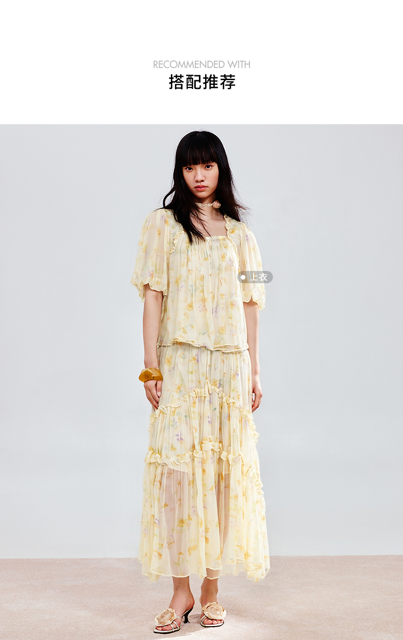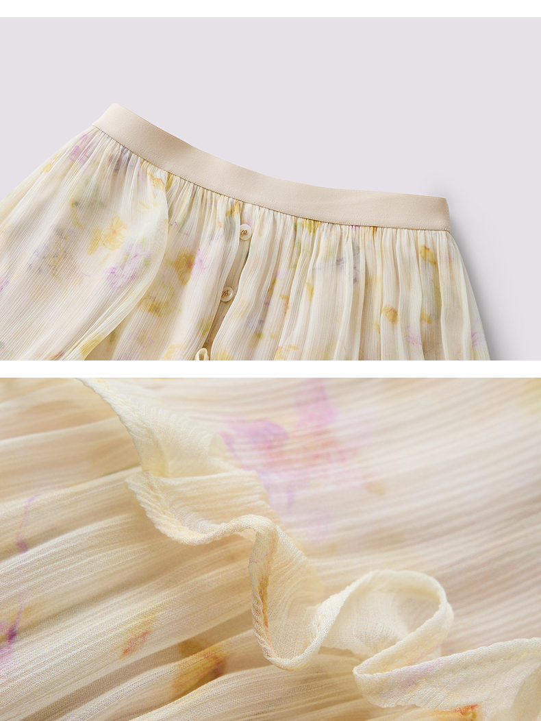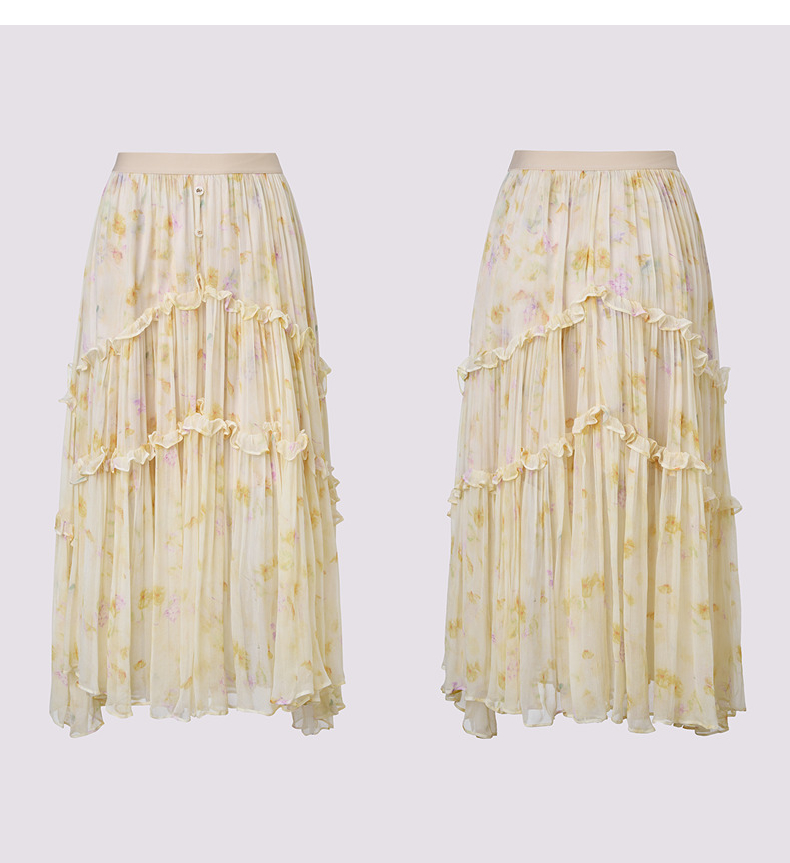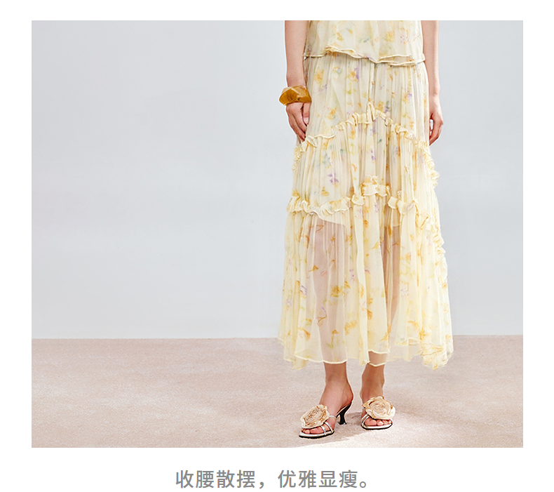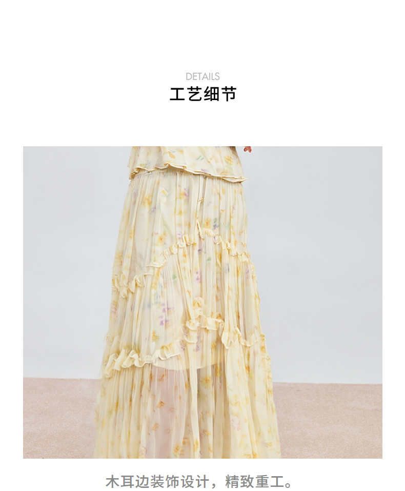 玛克门店发货:夏季新款甜美优雅显瘦高腰日落繁花印花A字大摆裙(货号:MF86SK268)