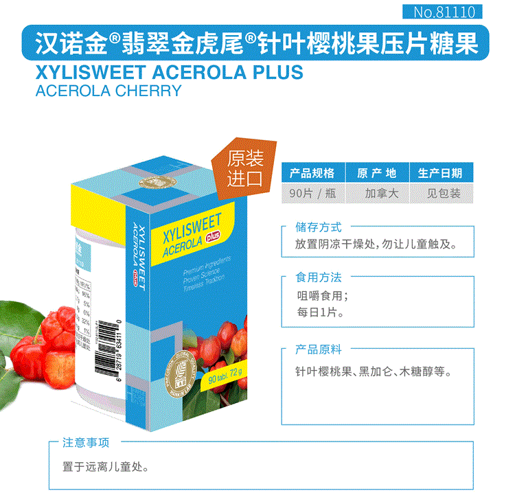 汉诺金 抗疲劳营养补充 翡翠金虎尾针叶樱桃果压片糖果 90片/瓶